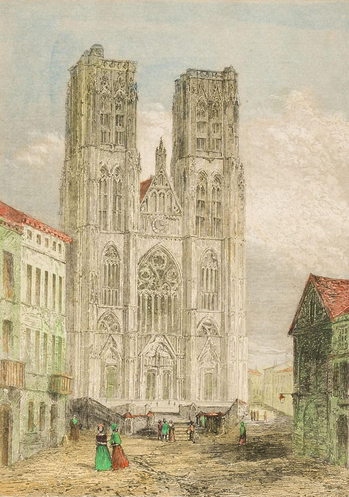 Unknown (19th century), View of St Michel Church in Brussels, 19th century, Steel engraving