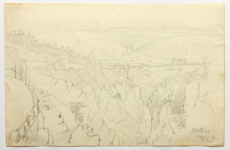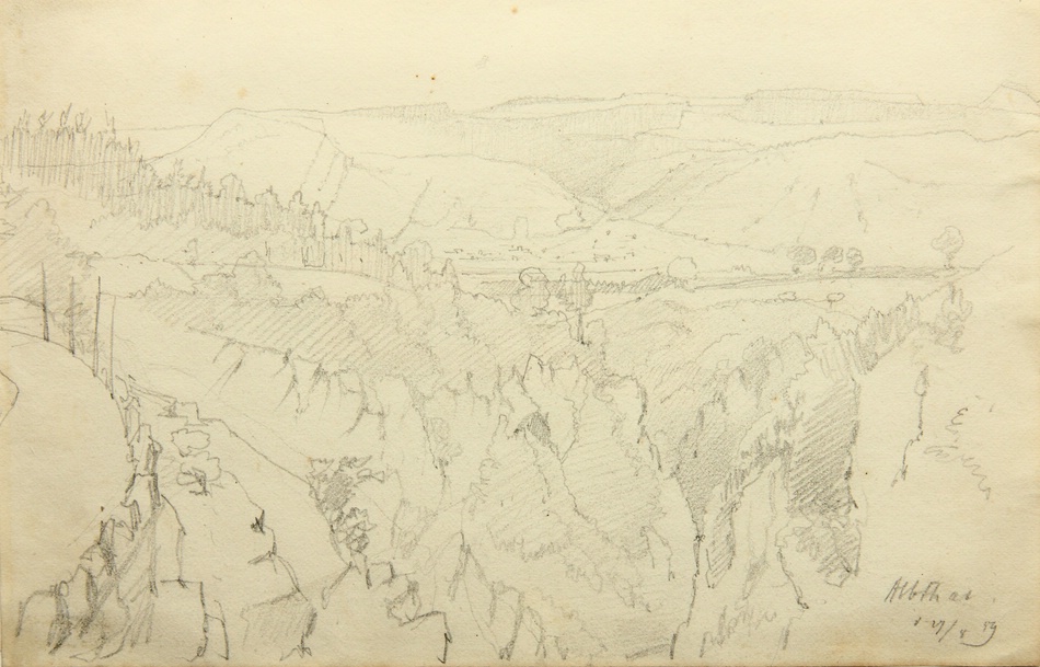 Unknown (19th century), View over the Alb valley near Waldshut in the Black Forest, 1859, Pencil
