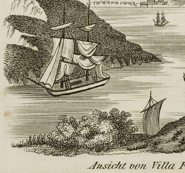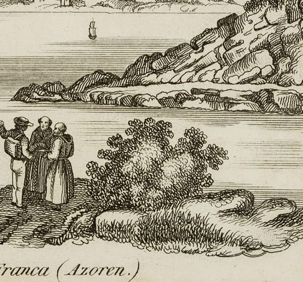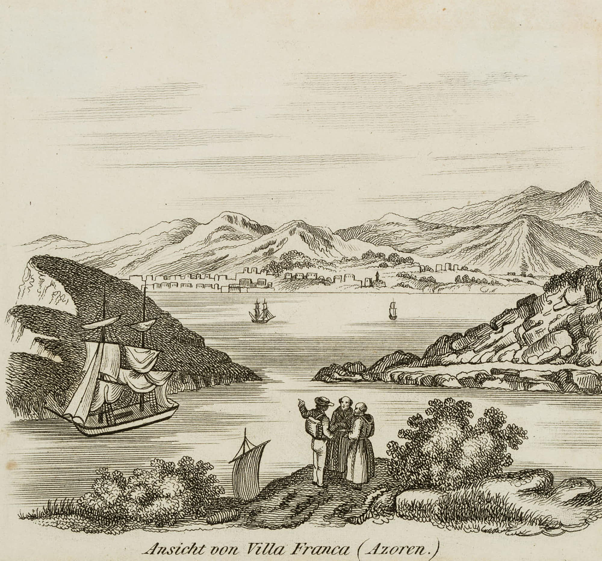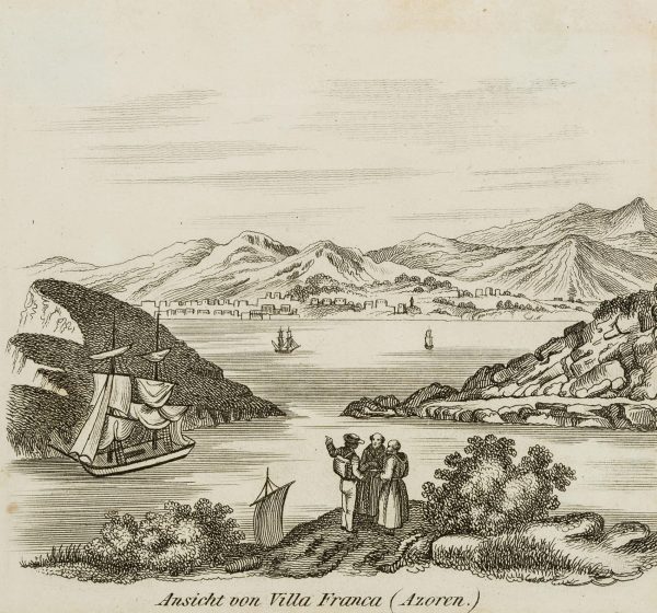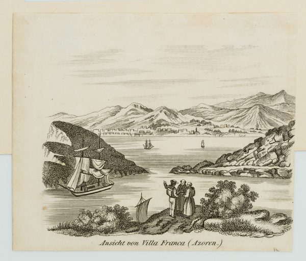 - Beschreibung: Unter der Graphik betitelt mit “Ansicht von Villa Franca (Azoren.)”.
