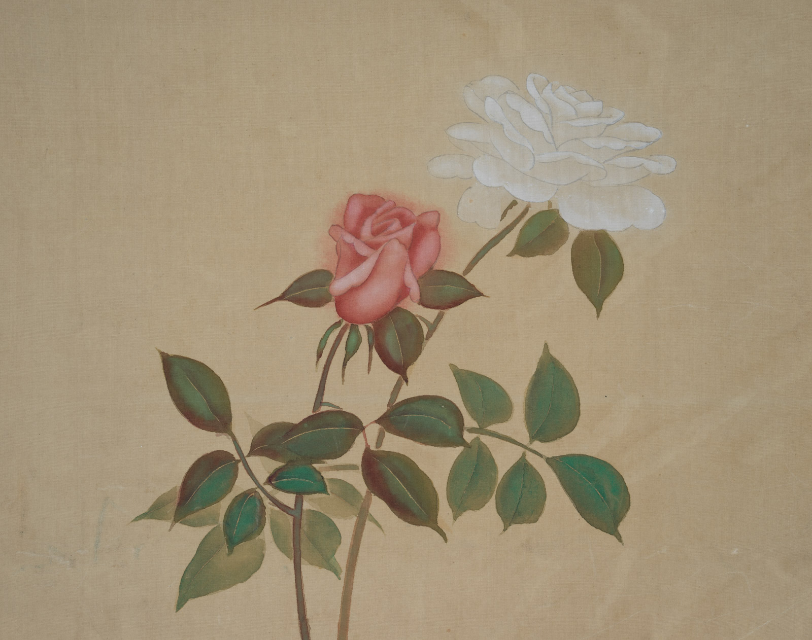 • Technik: Aquarell auf Seide, aufgezogen auf Papier