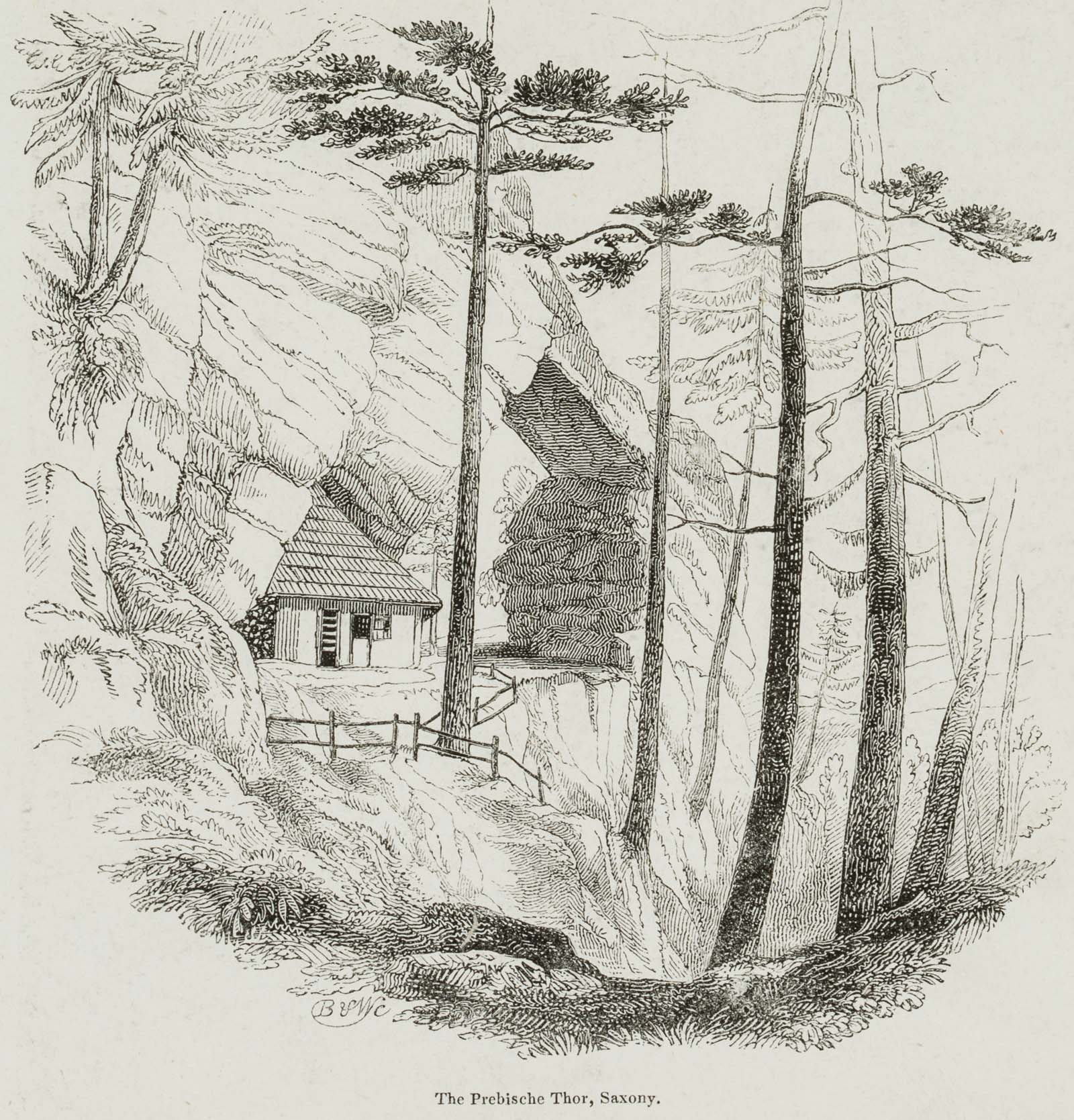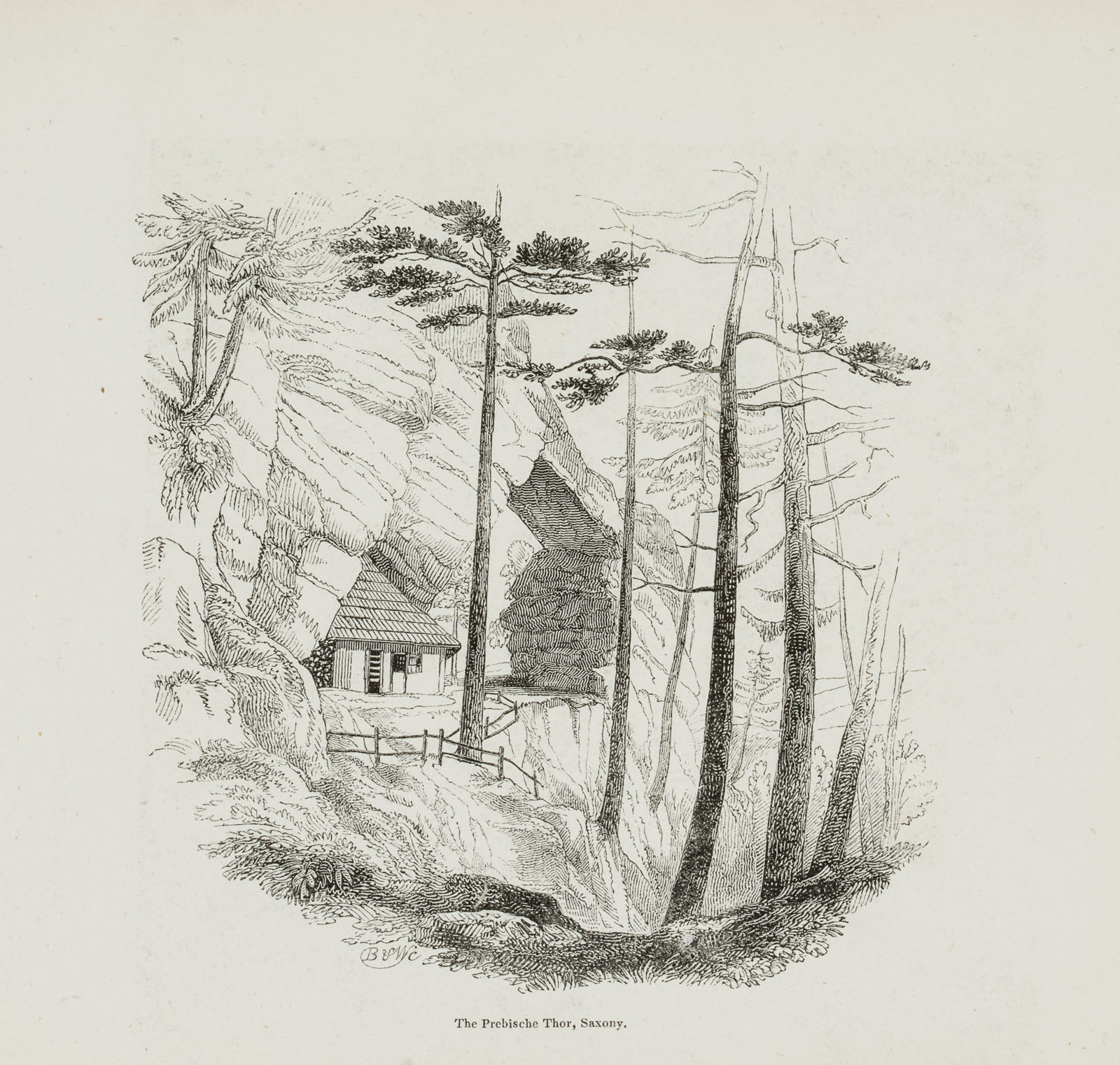 - Inscription: Monogrammed lower left in the image: “B & Wc”. Inscribed in the centre below the depiction: “The Prebische Thor, Saxony.”