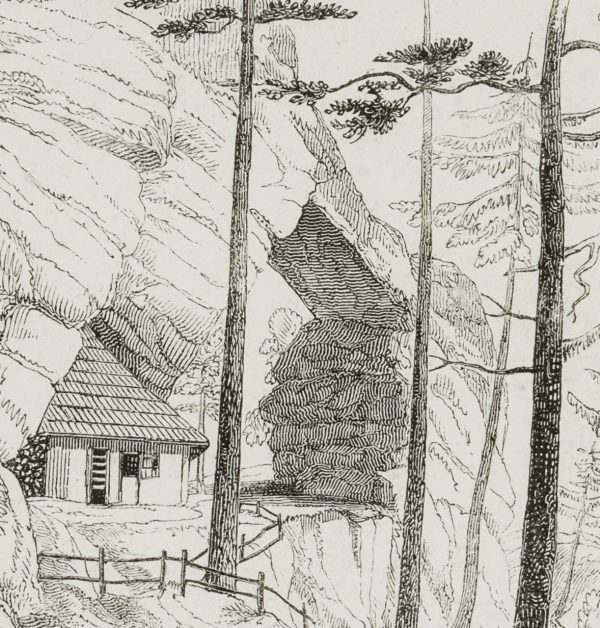 - Bezeichnung: Links unten in der Darstellung monogrammiert: “B & Wc”. Mittig unterhalb der Darstellung bezeichnet: “The Prebische Thor, Saxony.”