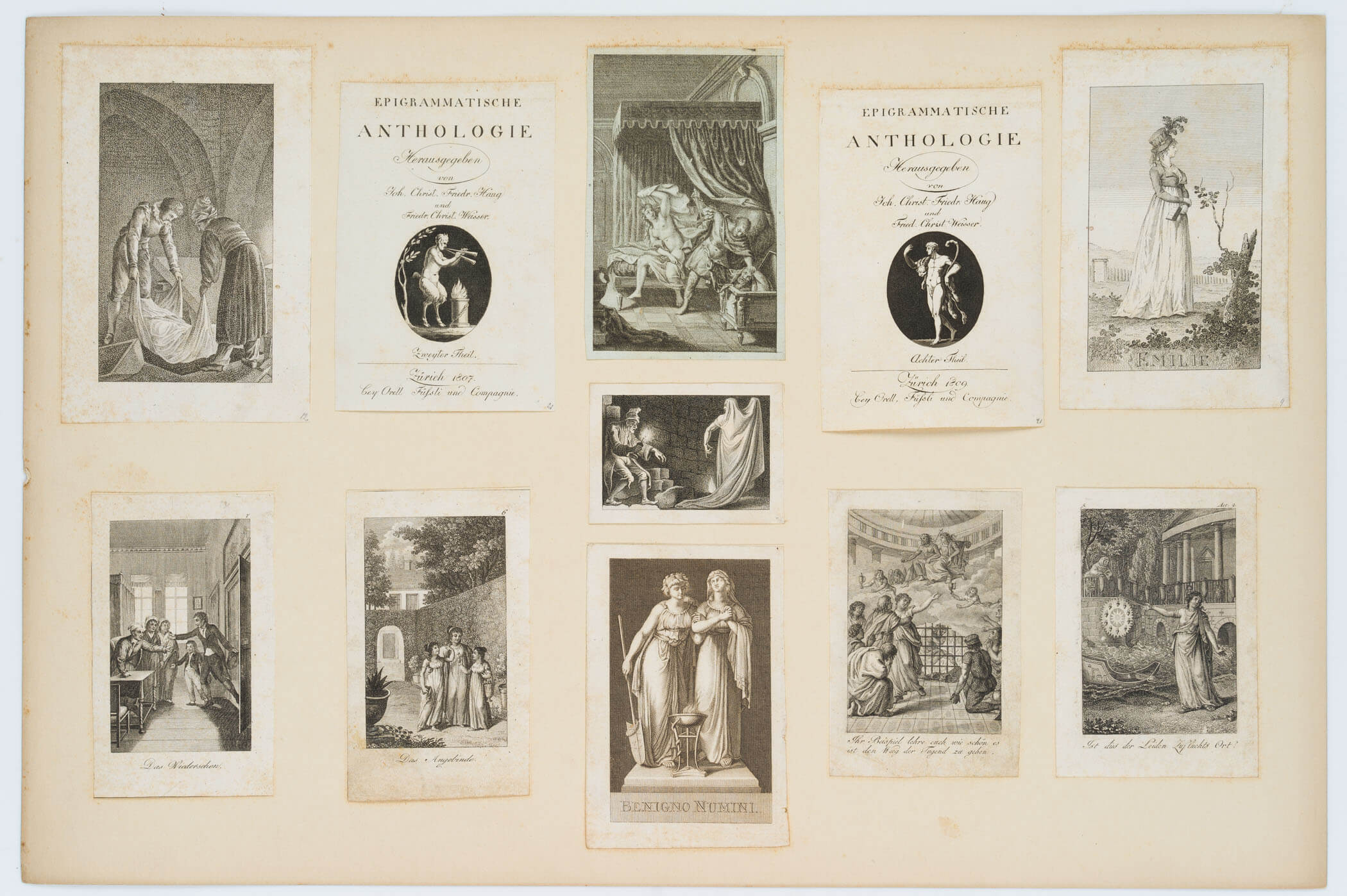 Unbekannt (19. Jahrhundert), Epigrammatische Anthologie. 2. u. 8. Teil. Bogen aus 11 Blättern, um 1809, Kupferstich