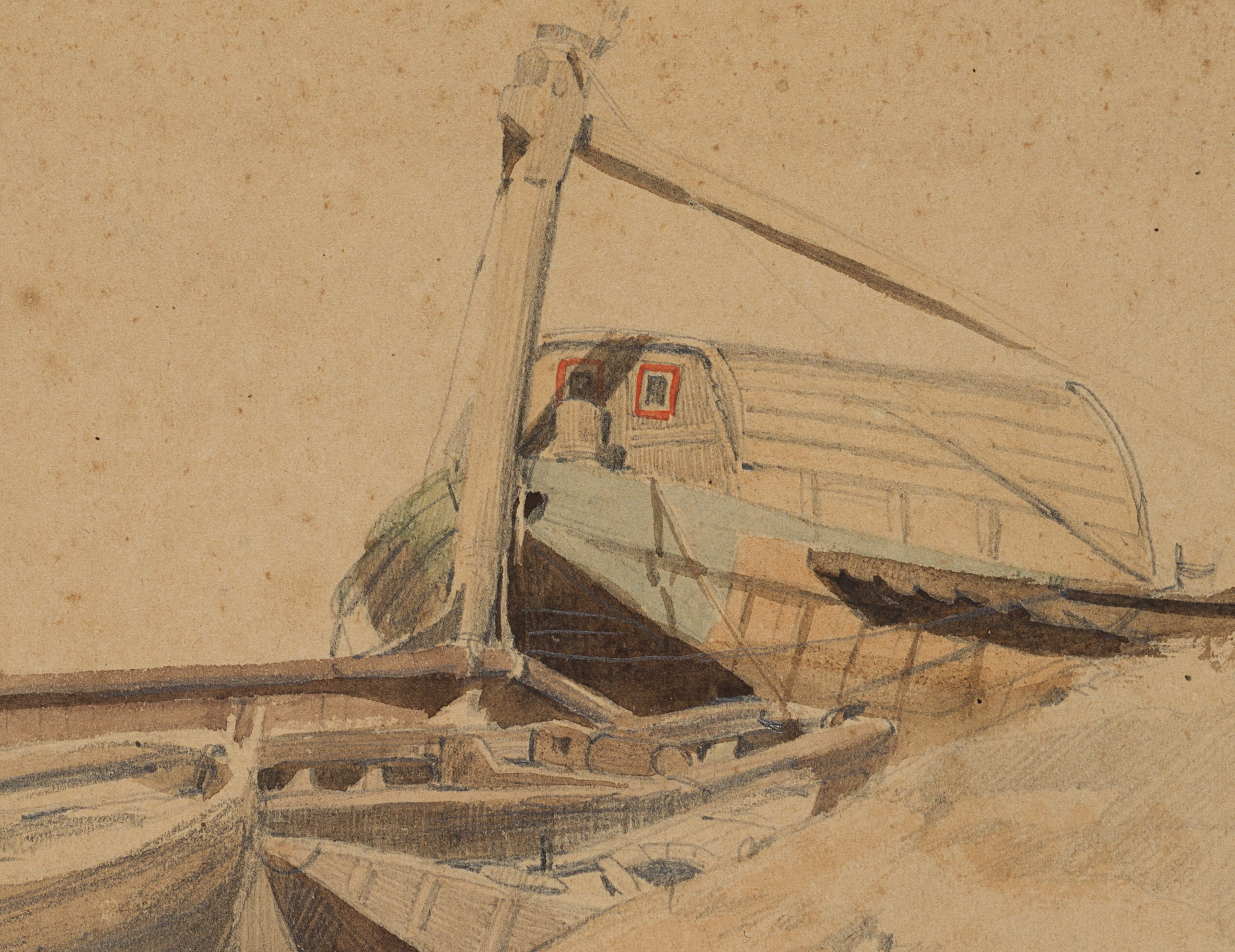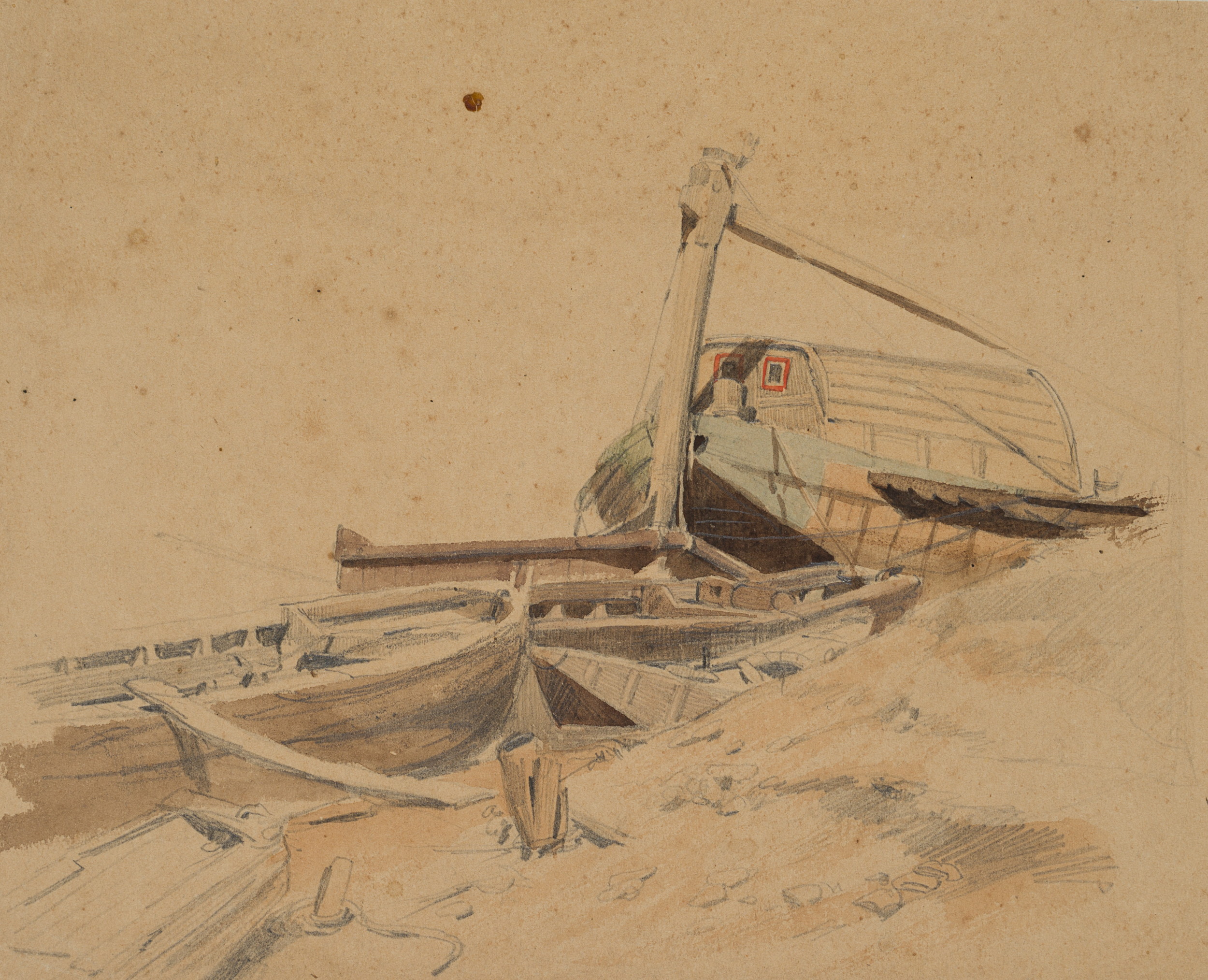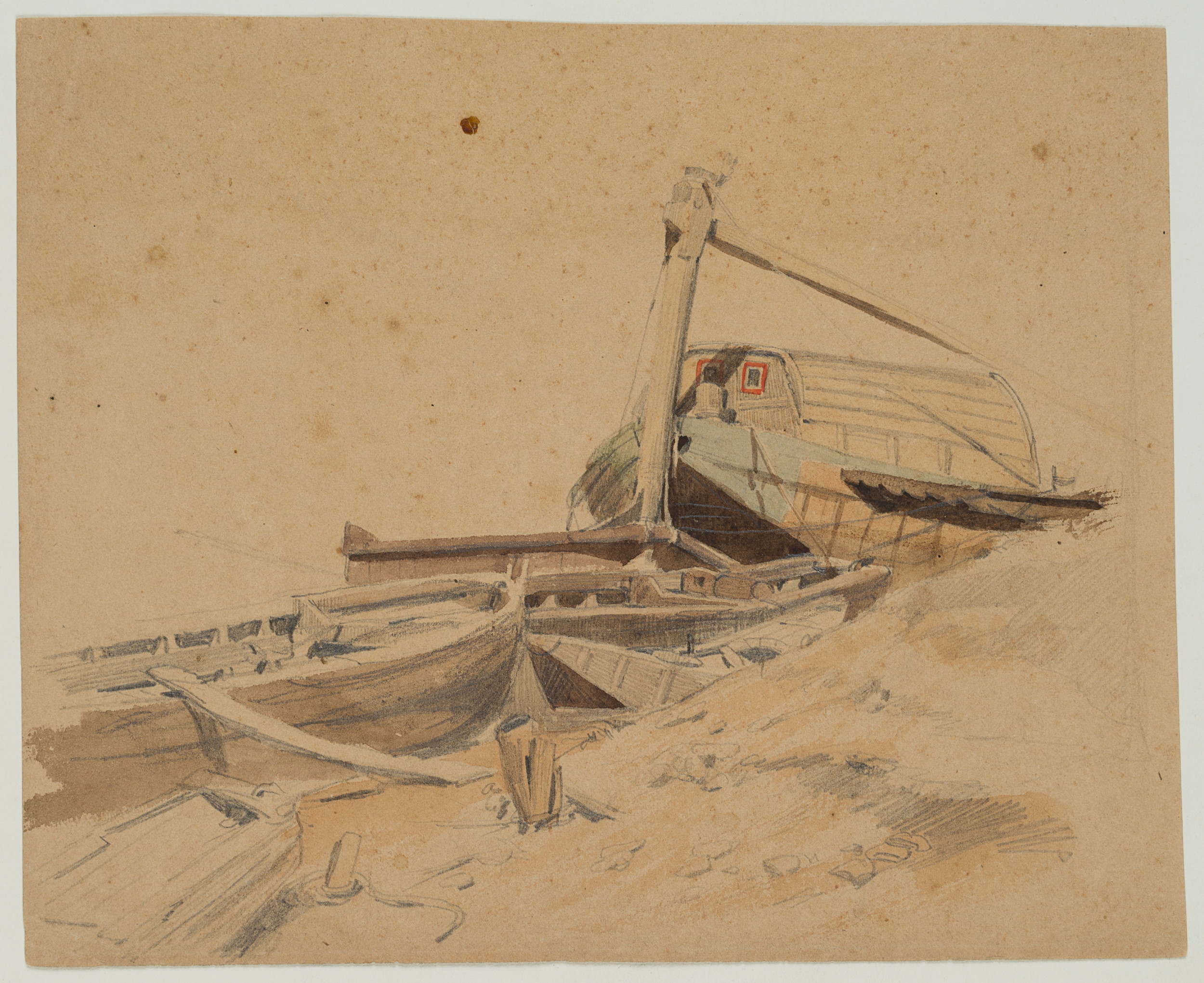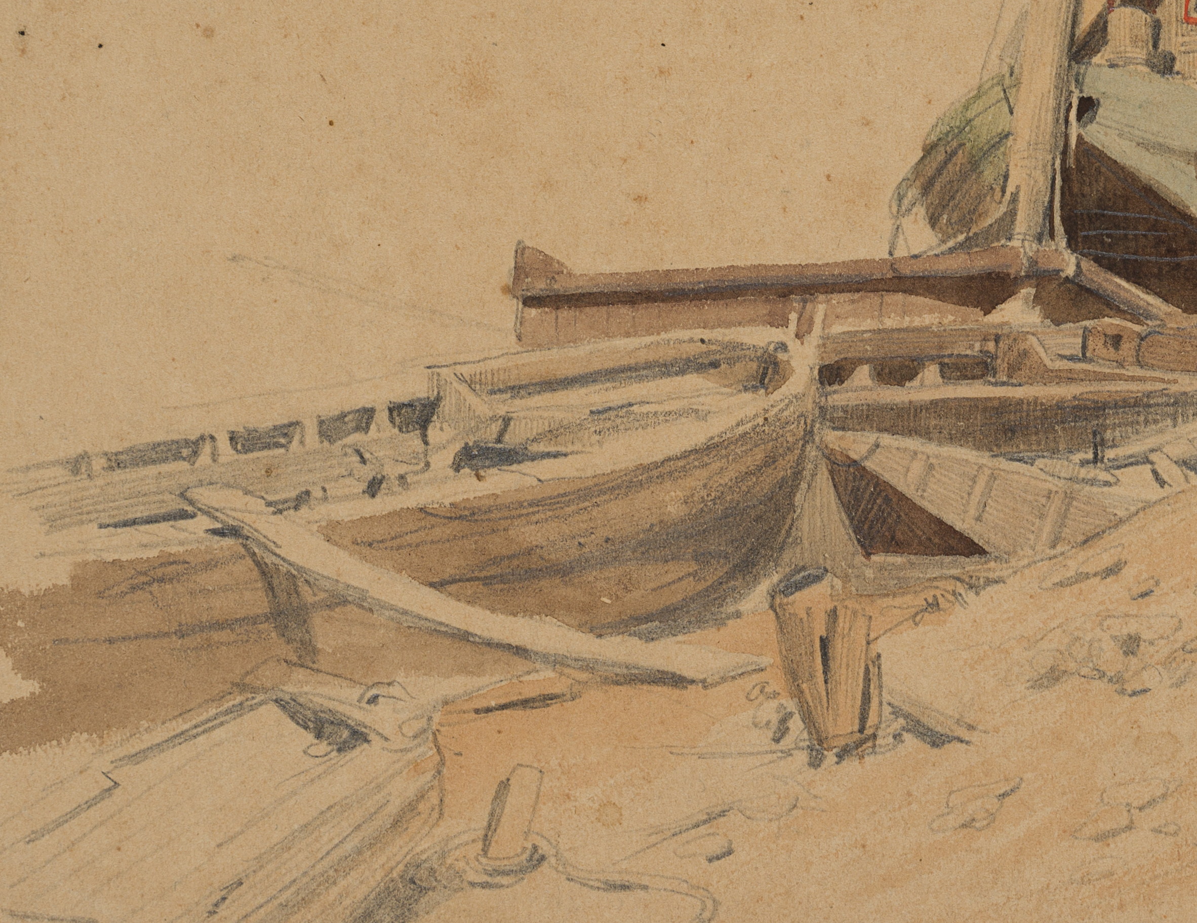 Unknown (19th century), Boats and barges on the shore, , Pencil