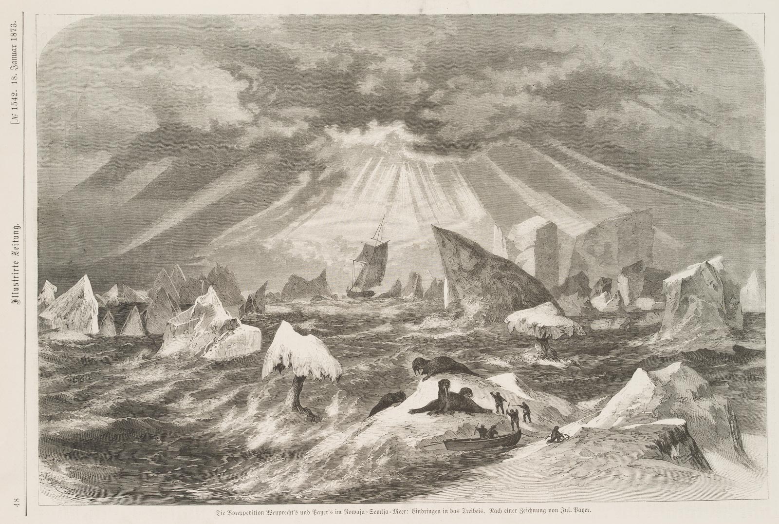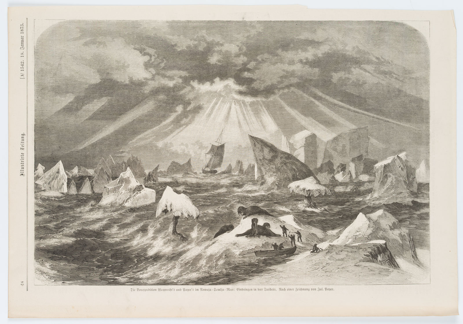 Unbekannt (19. Jahrhundert), “Borexpedition: Eindringen in das Treibeis”, aus: Illustrirte Zeitung, 1873, Holzstich