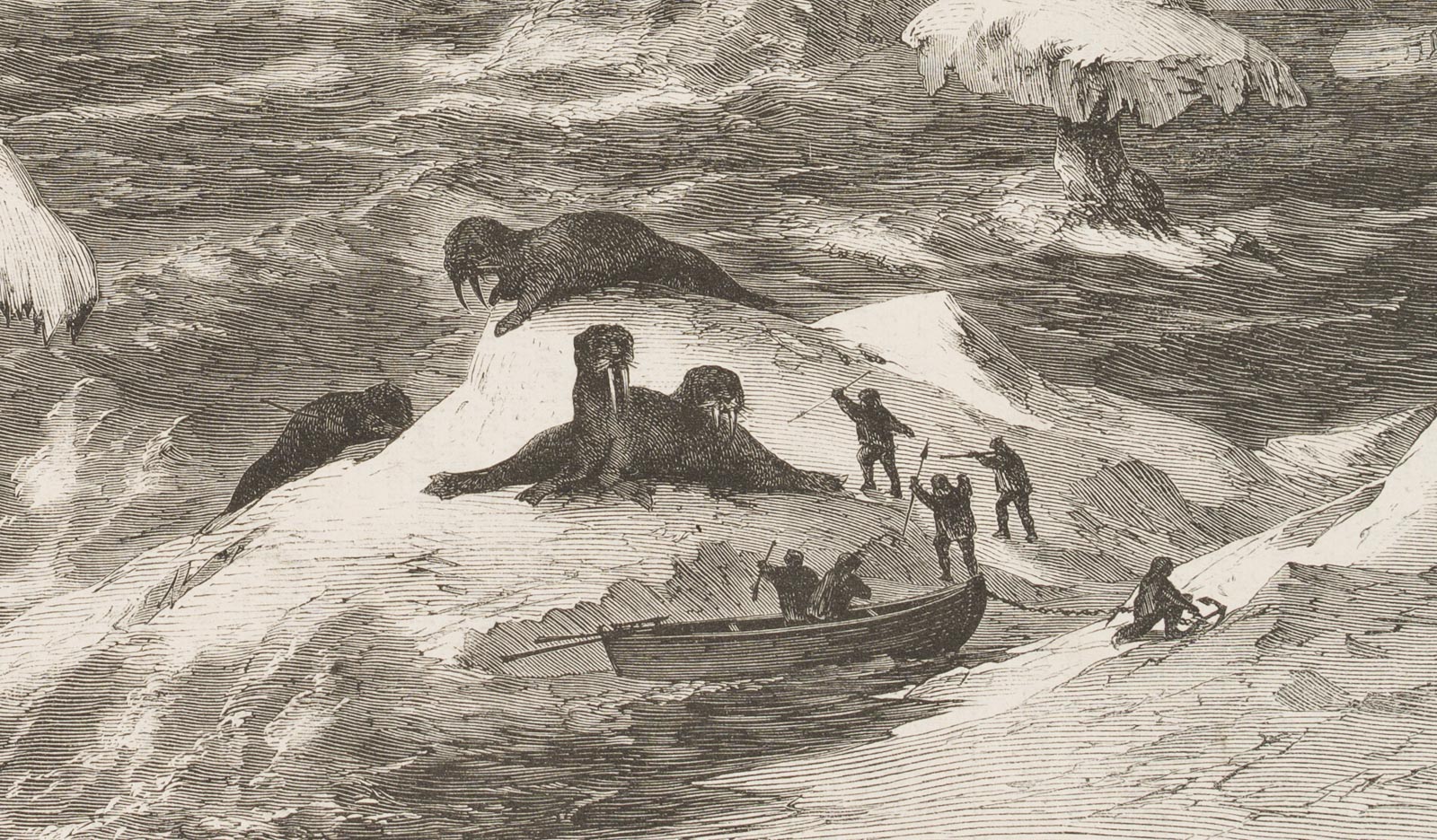 Unknown (19th century), “Borexpedition: penetrating the drift ice”, from: Illustrirte Zeitung, 1873, Wood engraving