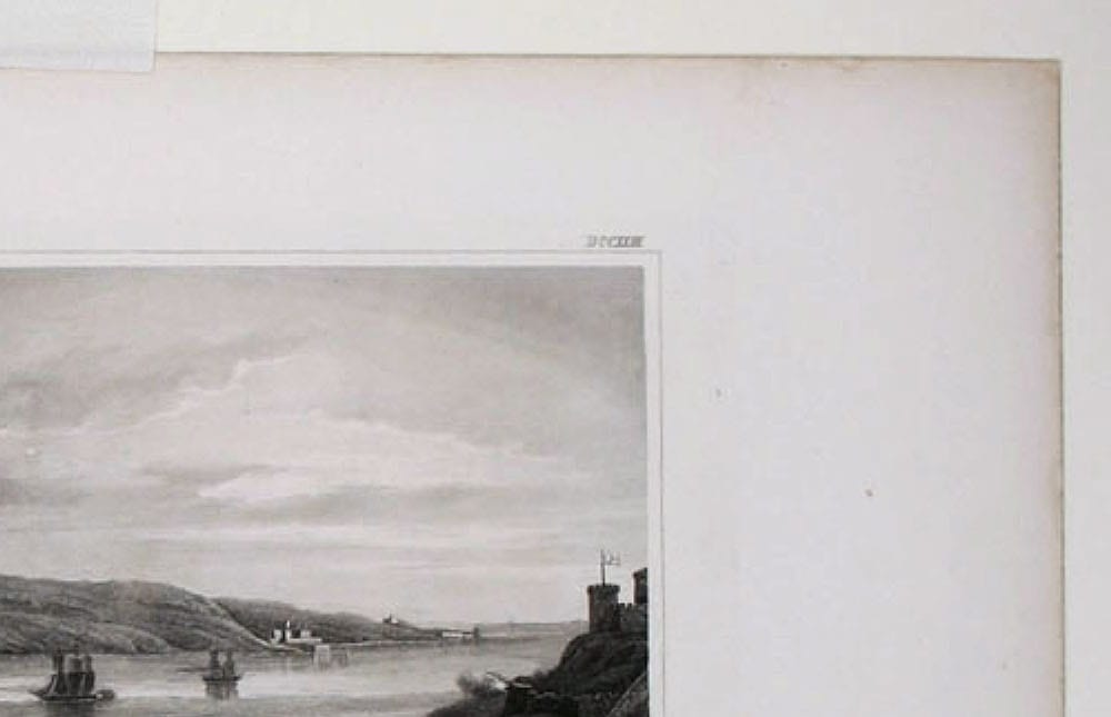 • Inscription: On the right side of the picture the fort Madjar Fabiassi is situated on a hill, on the opposite shore the fort Fanaraki and Rumeli Kawak are visible. Imposing sailing ships float on the calm water, staffage figures enliven the foreground of the academically composed sheet.