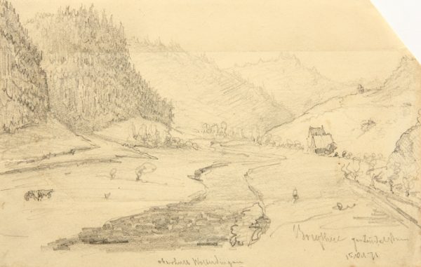 Unbekannt (19. Jahrhundert), Bregtal bei Zindelstein im Schwarzwald, 1871, Bleistift