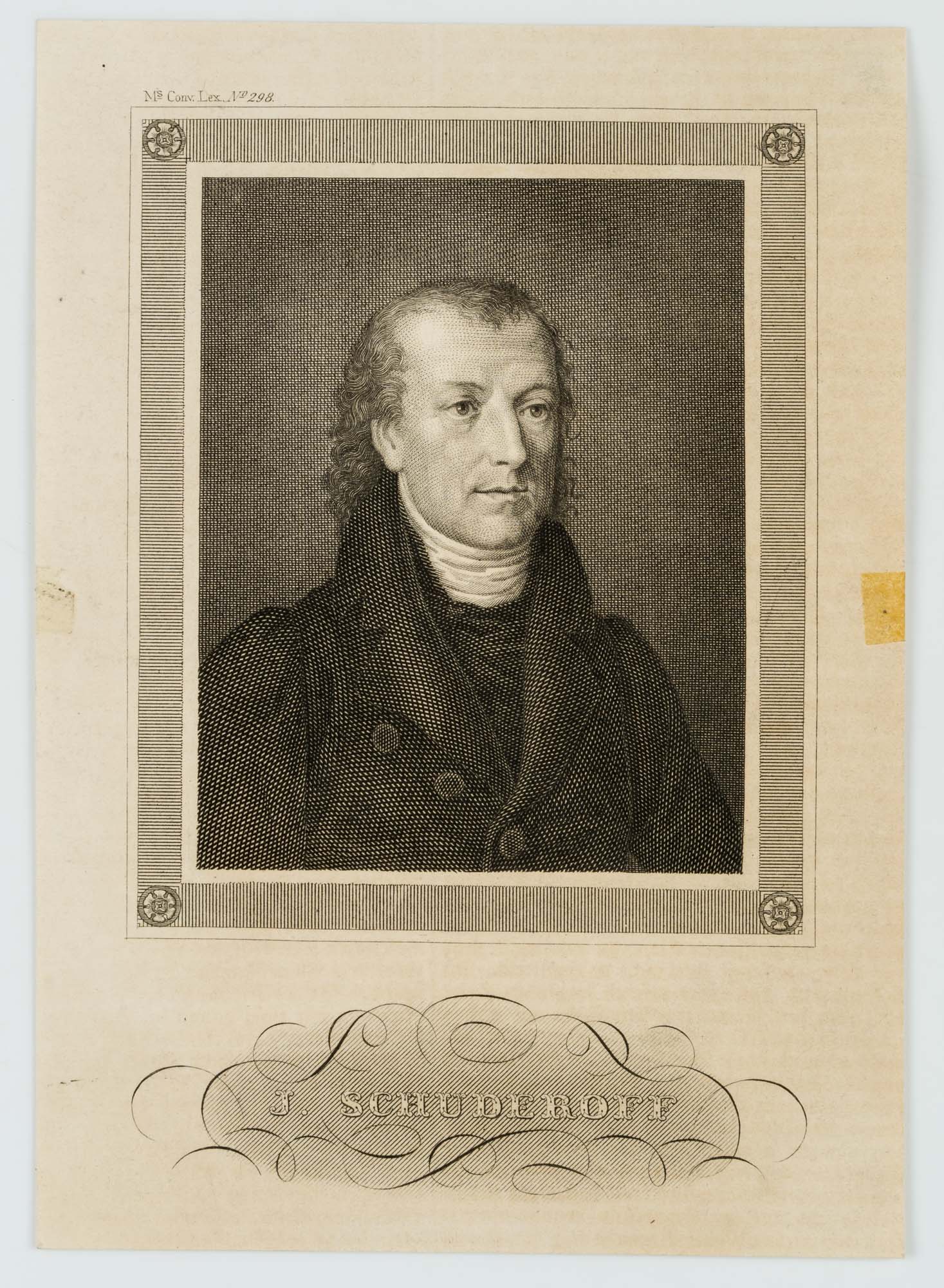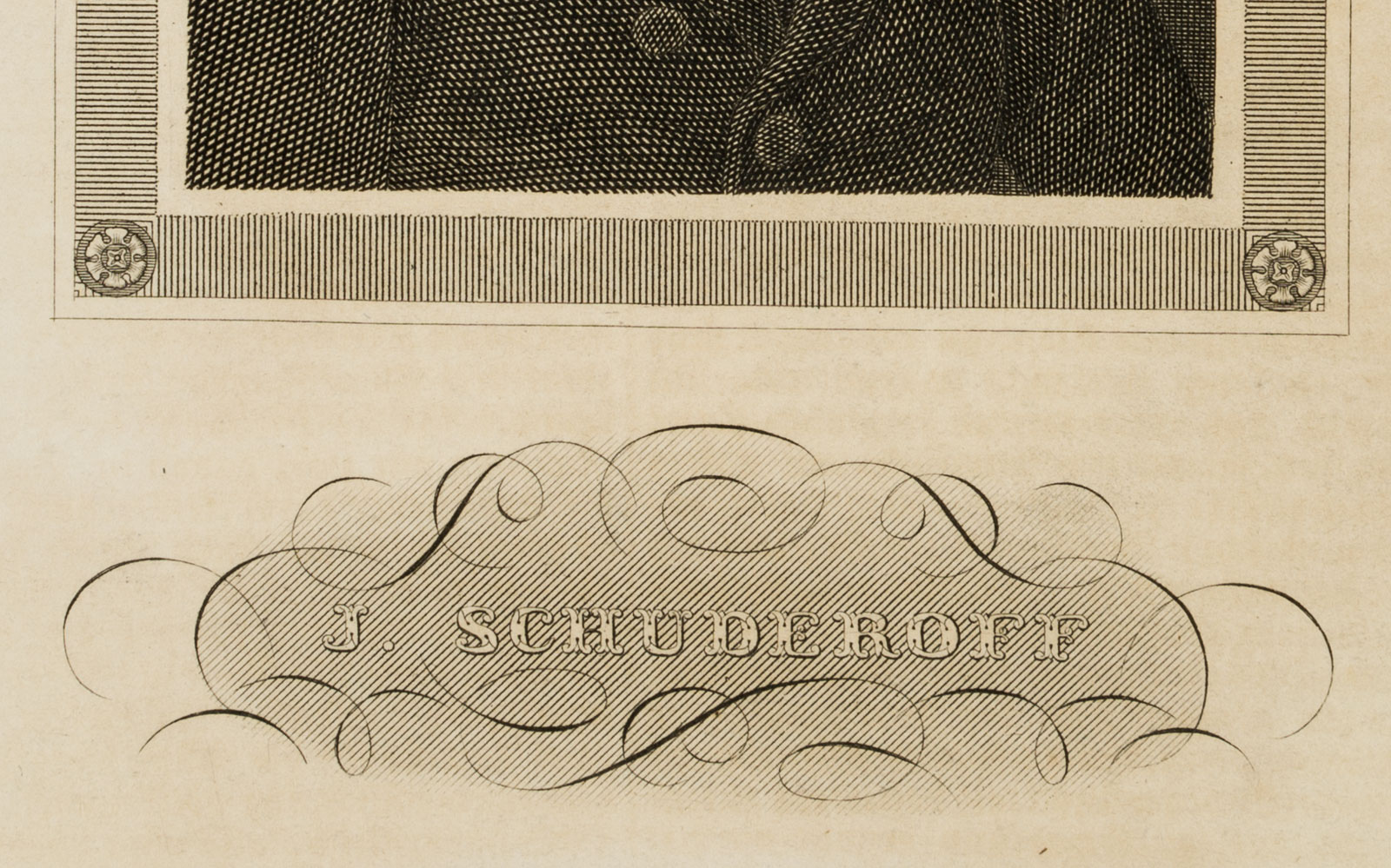 - Bezeichnung: Unterhalb der Graphik mit dem Namen des Dargestellten “J. SCHUDERHOFF” bezeichnet.