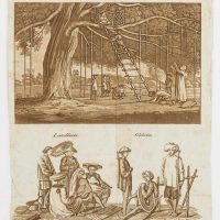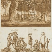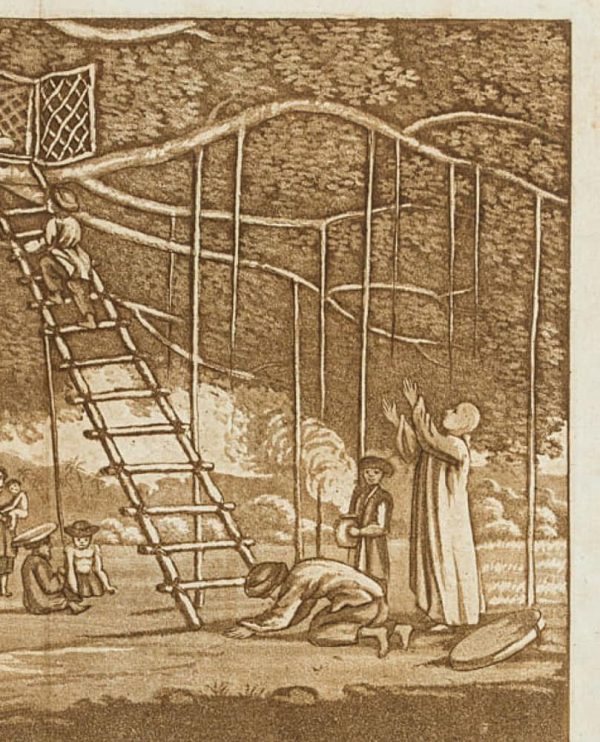 - Inscription: Titled above: “Sacrifice of the god Fo in Cochinchina.” Bottom titled: “Cochin Chinese Costumes.” Centre titled: “Country People.” and “Soldiers.”