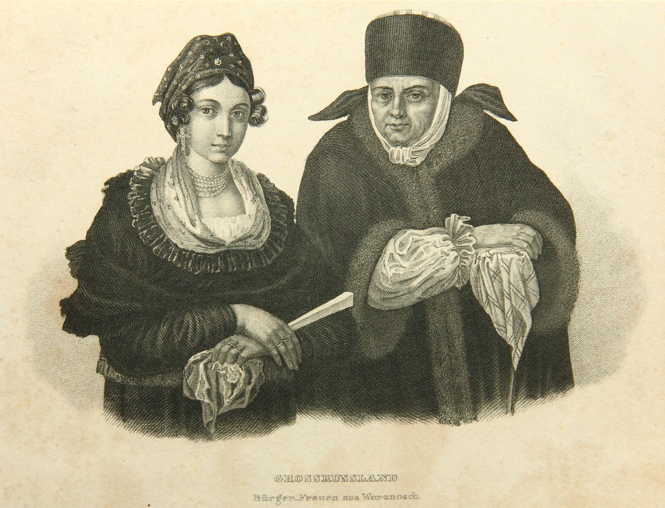 Unbekannt (19. Jahrhundert), Bürgerfrauen aus Woronesch in Südwestrussland, 19. Jahrhundert, Radierung