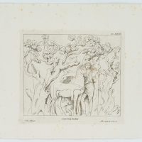 Unknown (19th century), “Cacciatore”, The Hunter, after an antique relief in the Villa Albani in Rome, 19th century, Etching