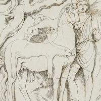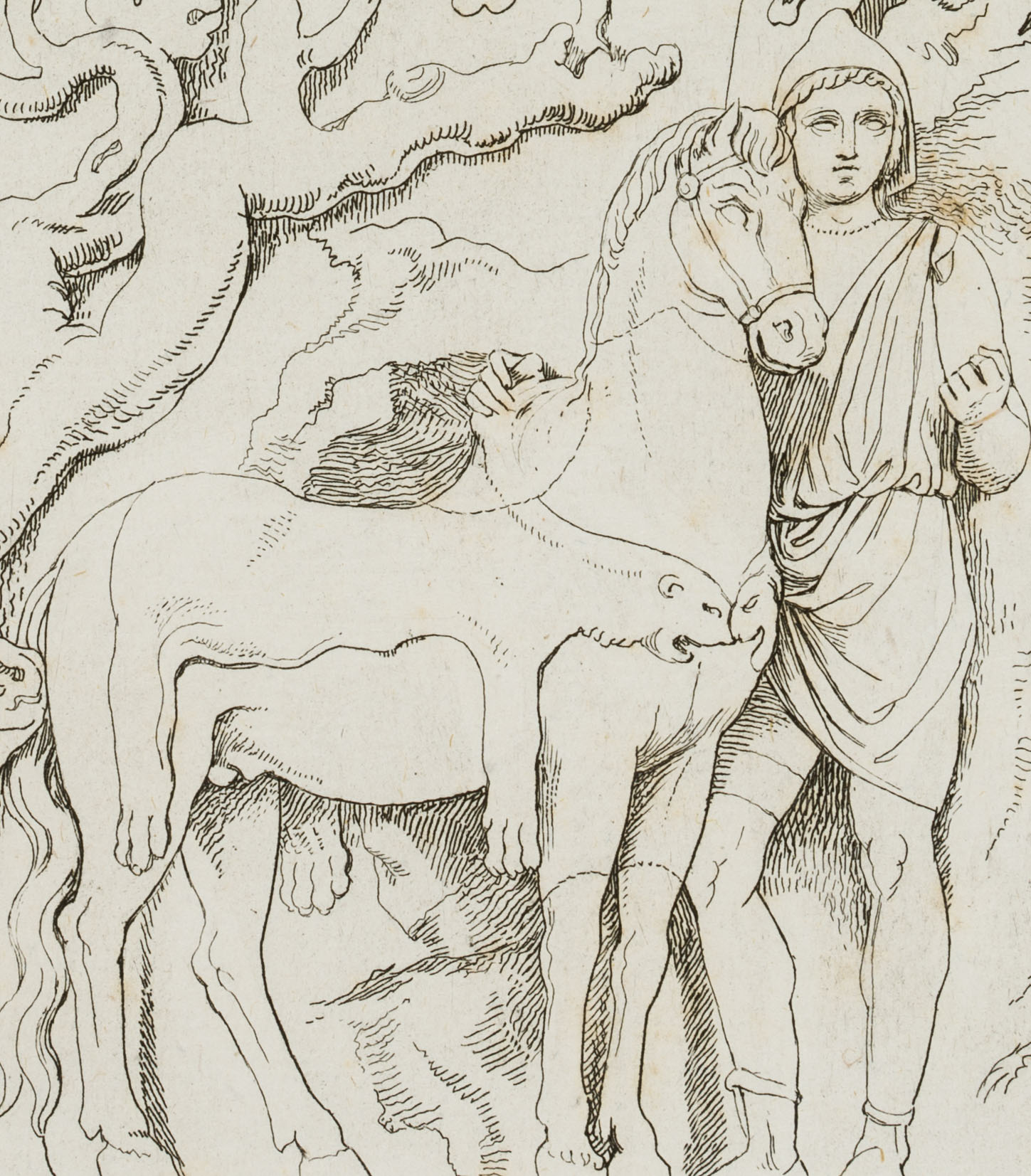 Schöne Umzeichnung nach antikem Relief aus der Sammlung des Kardinals Alessandro Albani (1692 Urbino – 1779 Rom) in der Villa Albani in Rom. - Datierung: 19. Jahrhundert