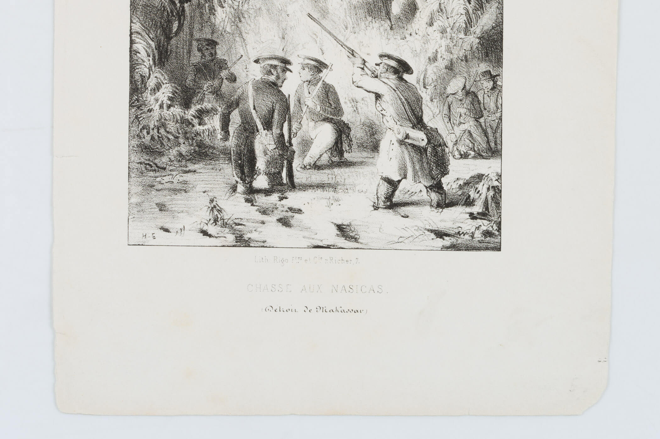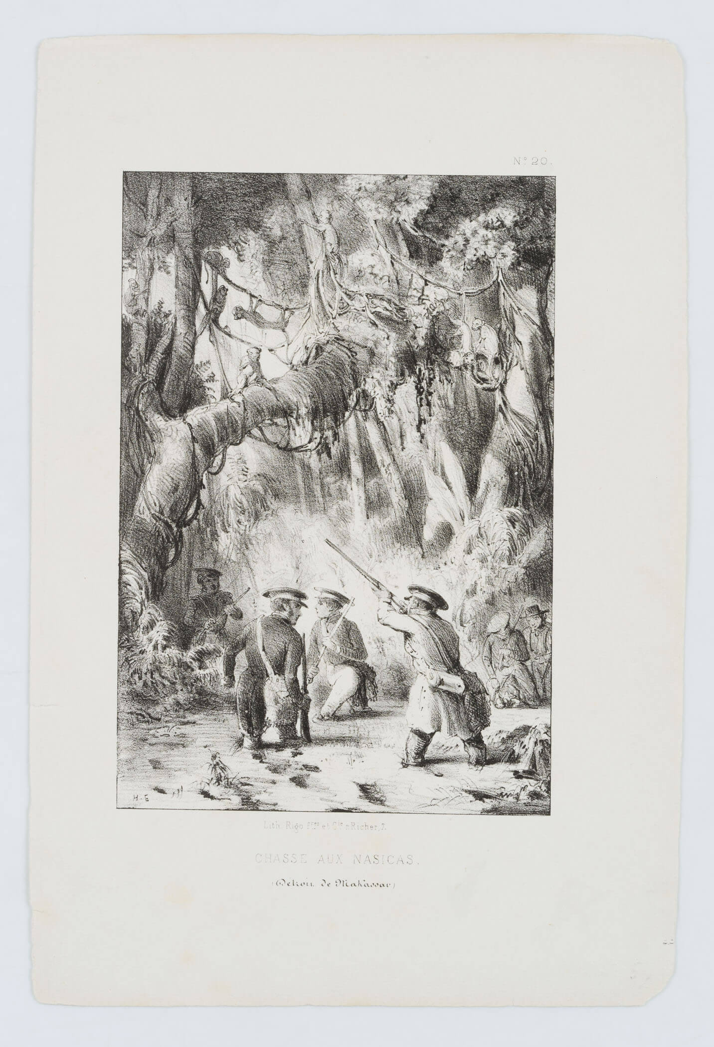 - Bezeichnung: Unten links monogrammiert: “H.S.”. Unten mittig im Druck bezeichnet: “Lith. Rigo fres et Cie Richer,7, Chasse aux Nasicas”. Oben rechts nummeriert: “N° 20”.