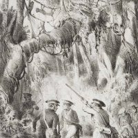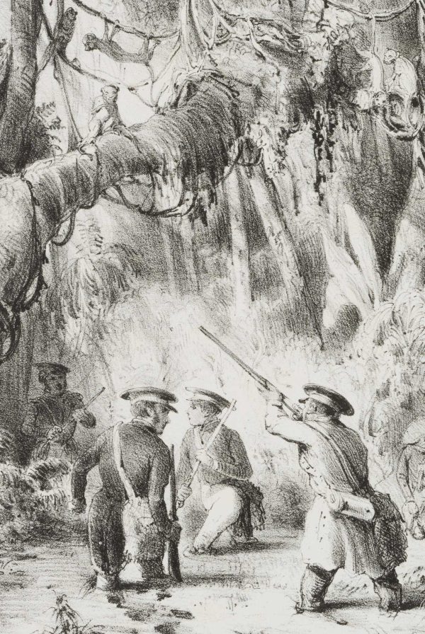 Unknown (19th century), ‘Chasse aux nasicas’. Hunting proboscis monkeys, c. 1850, Lithography
