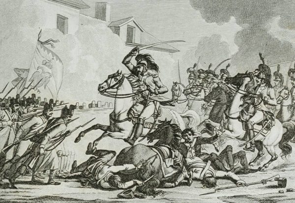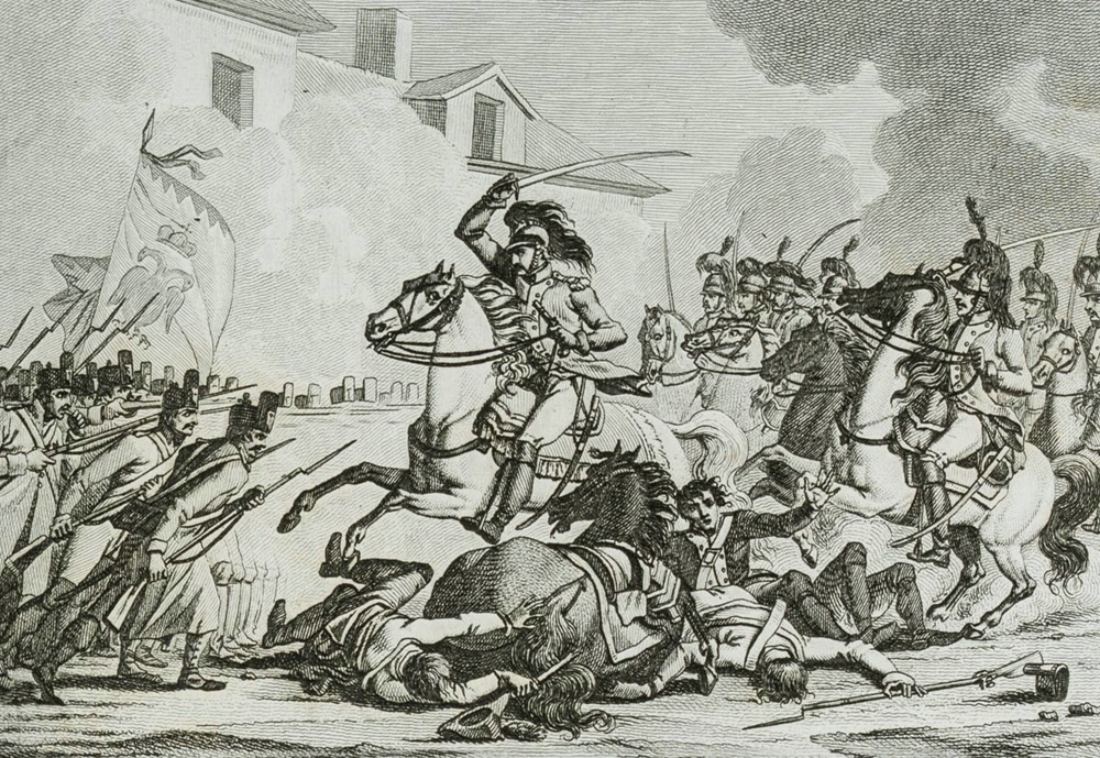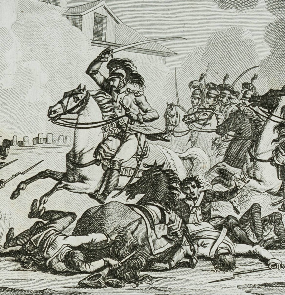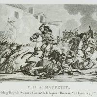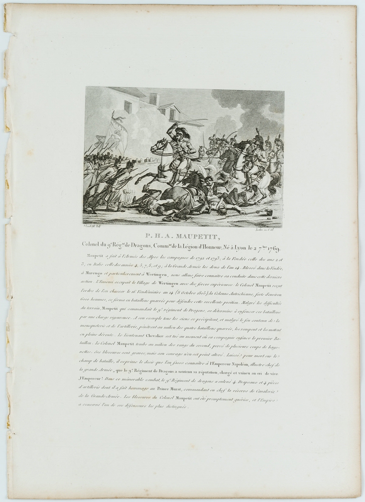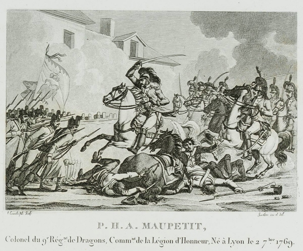 Unknown (19th century), Depiction from a series of the Napoleonic Wars, Colonel P H A Maupetit (*1769), 19th century, Etching