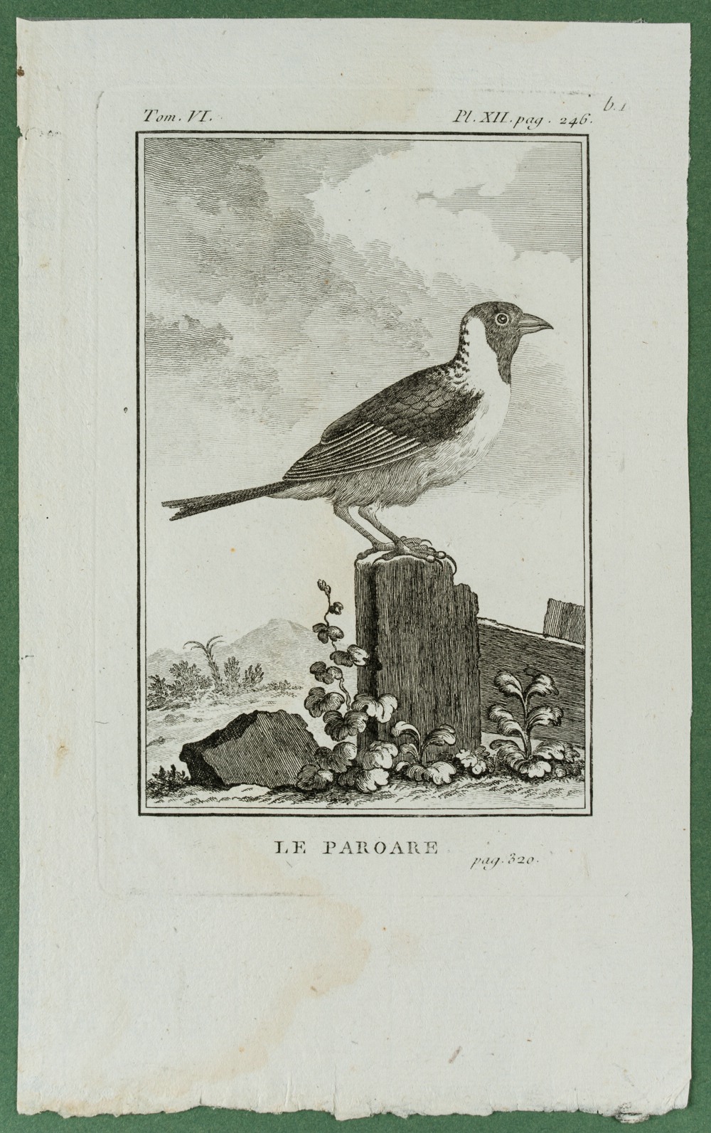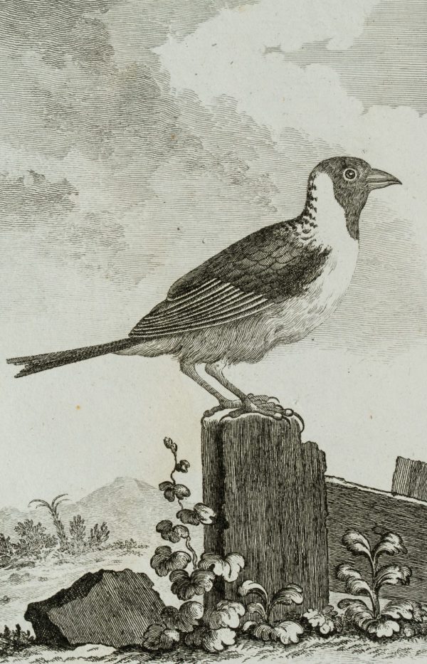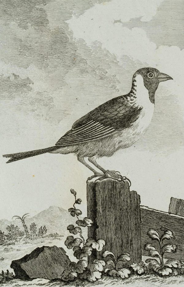 - Beschreibung: Es handelt sich um die ornithologische Darstellung eines Sperlings vor pittoresker Umgebung. Die Darstellung stammt aus dem vogelkundlichen Werk Histoire naturelle, générale et particulière. Histoire naturelle des oiseaux. Band 4 von Georges-Louis Leclerc Buffon aus dem Jahr 1838.