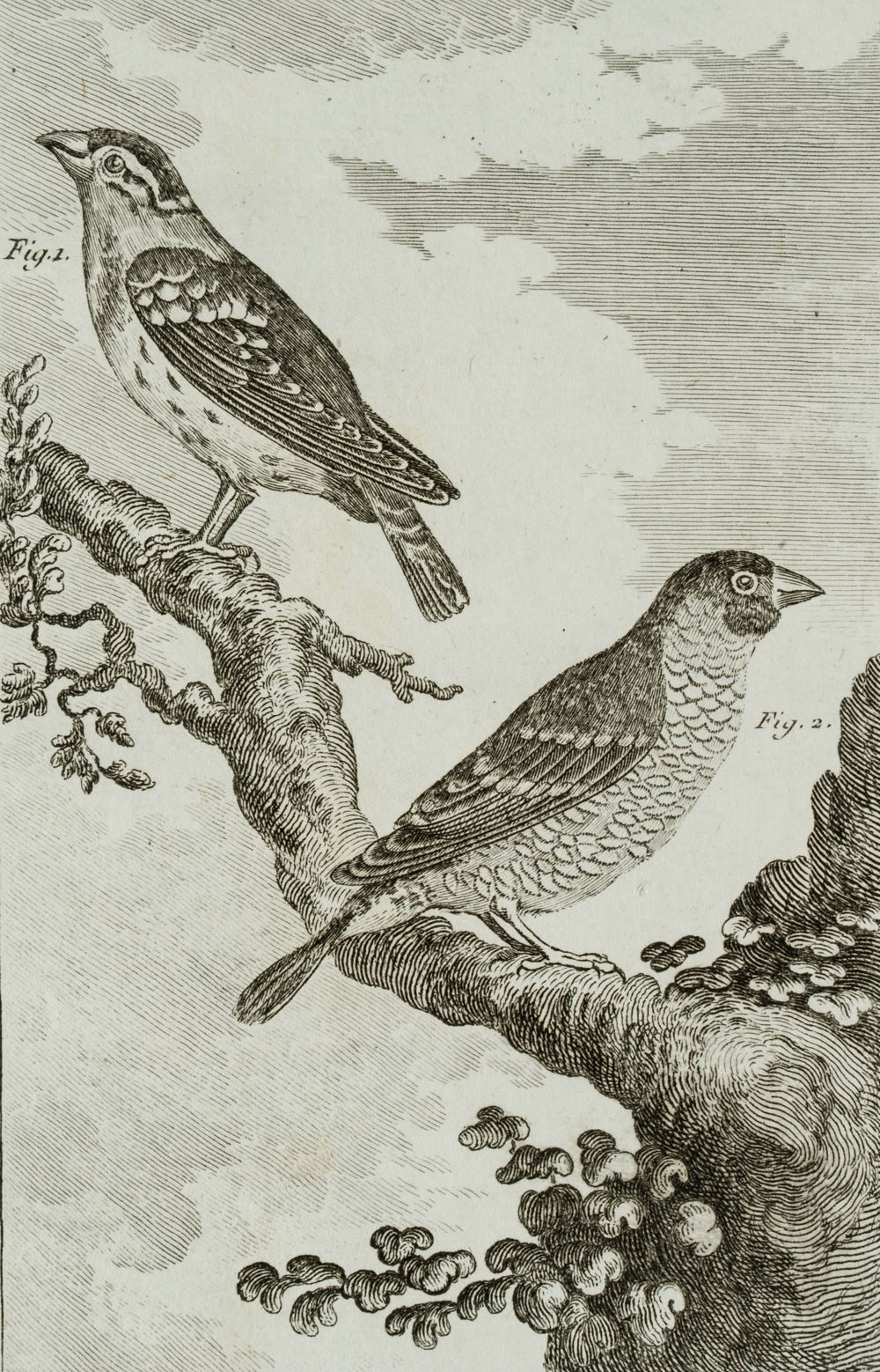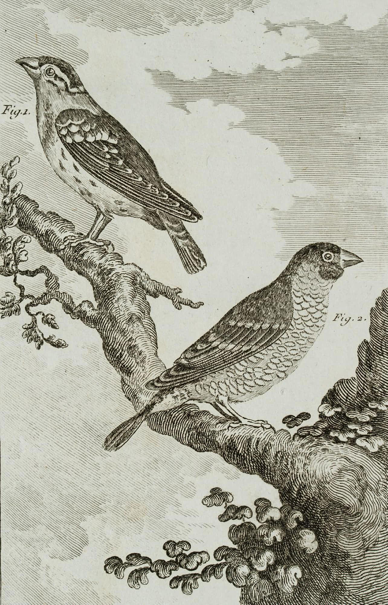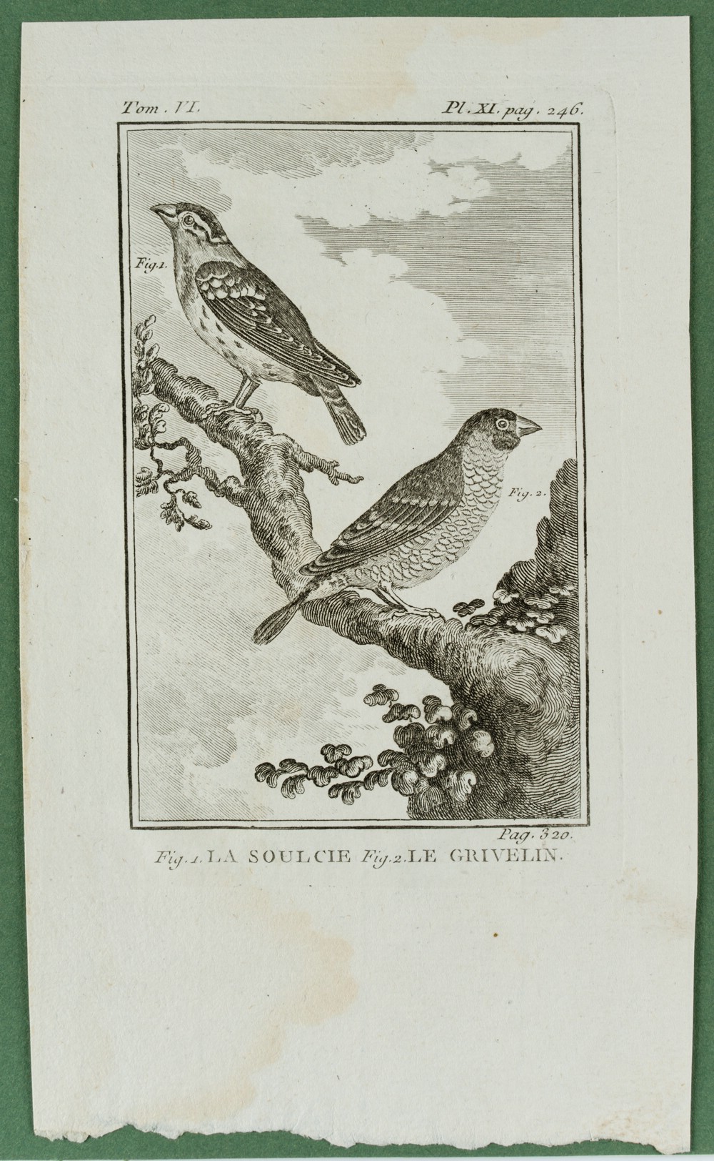 Unknown (19th century), Depiction of two birds, Rock Sparrow & Grivelin, 1838, Copper engraving