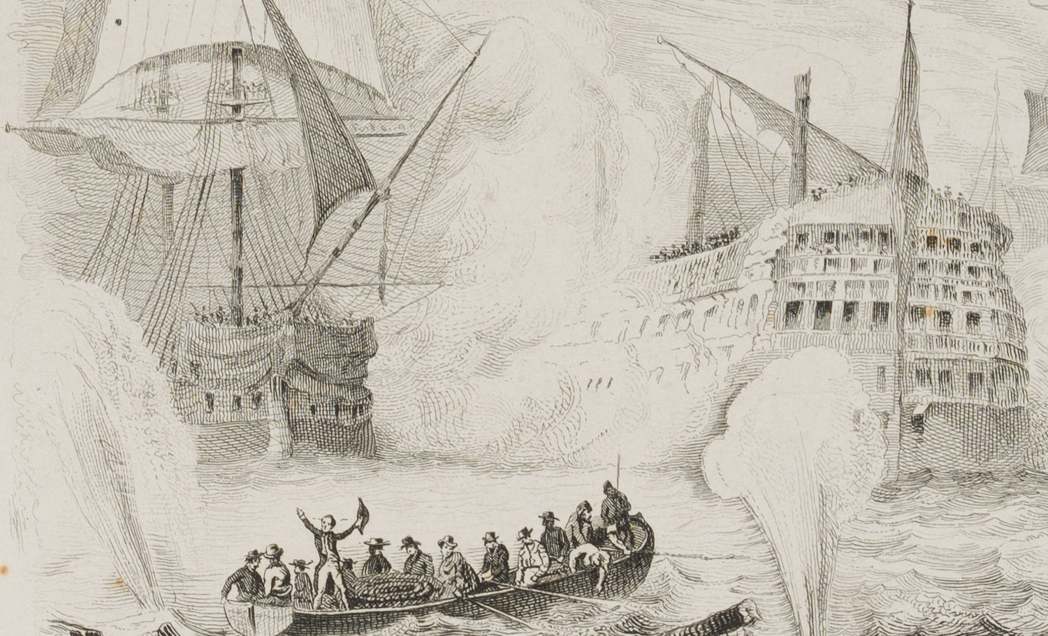 Unknown (19th century), Denis Decrs und Vaisseau le Glorieuax, 19th century, Etching