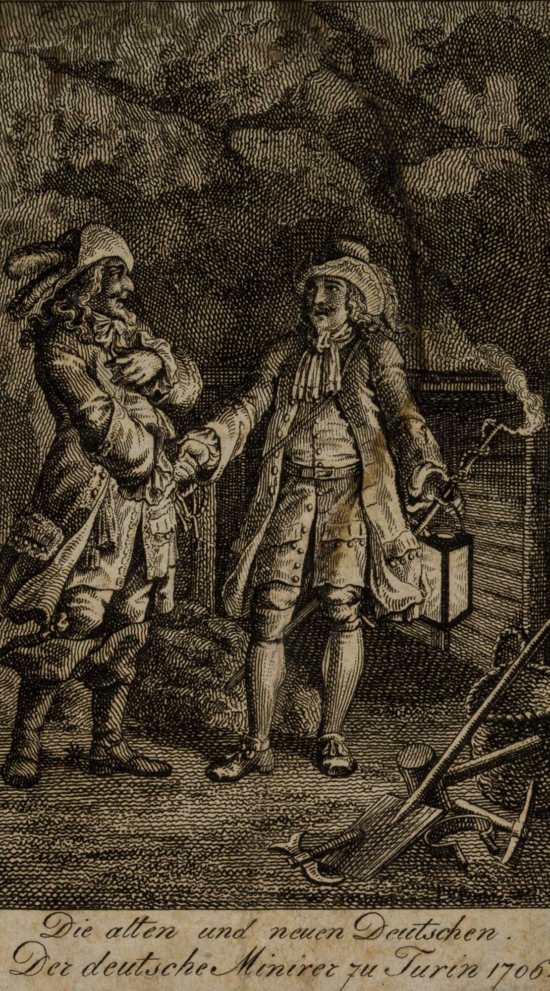 - Inscription: Inscribed below the image “Die alten und neuen Deutschen. / The German Minister at Turin 1706”; numbered “7.” at upper right. Depiction in the context of the Battle of Turin in 1706, the largest battle of the War of the Spanish Succession on Italian soil.