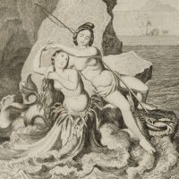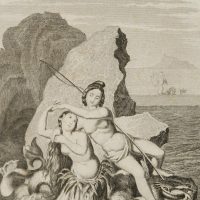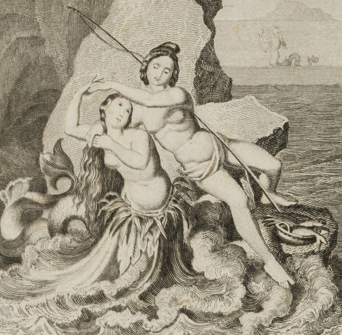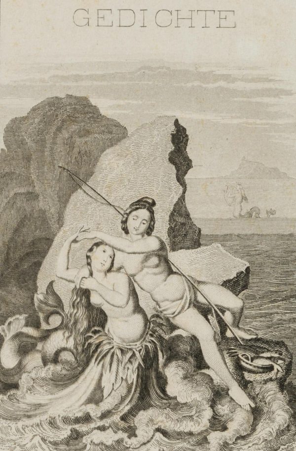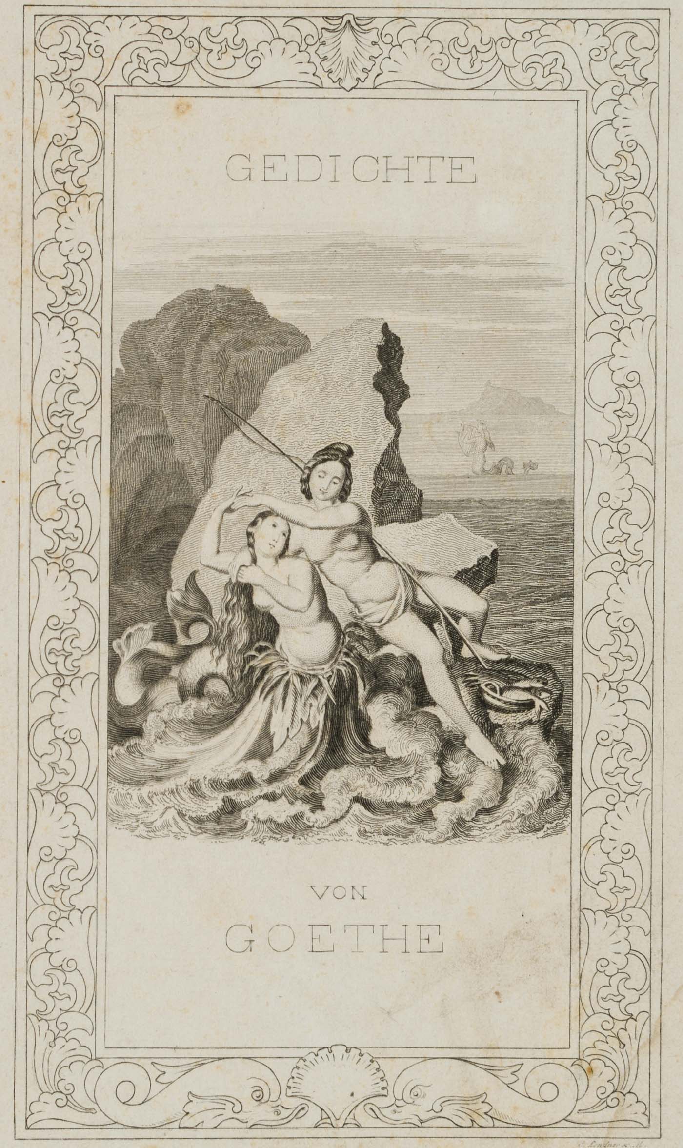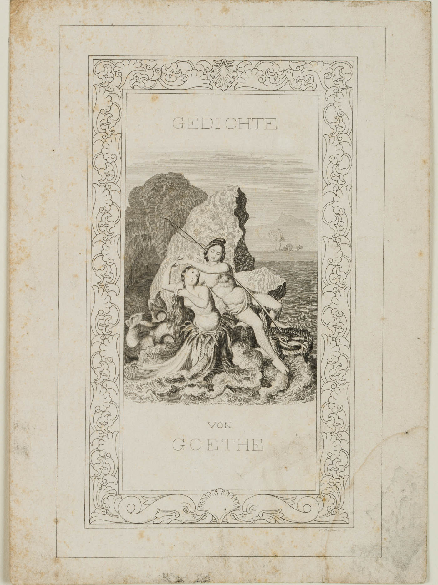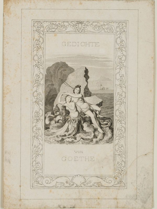 - Description: Frontispiece to a volume of poems by the German poet Johann Wolfgang GOETHE. The depiction, based on the ballad “The Fisherman” from 1779, shows a young man sitting on a rock being wooed by a young sea nymph. She lures the fisherman into the depths with her song and words.
