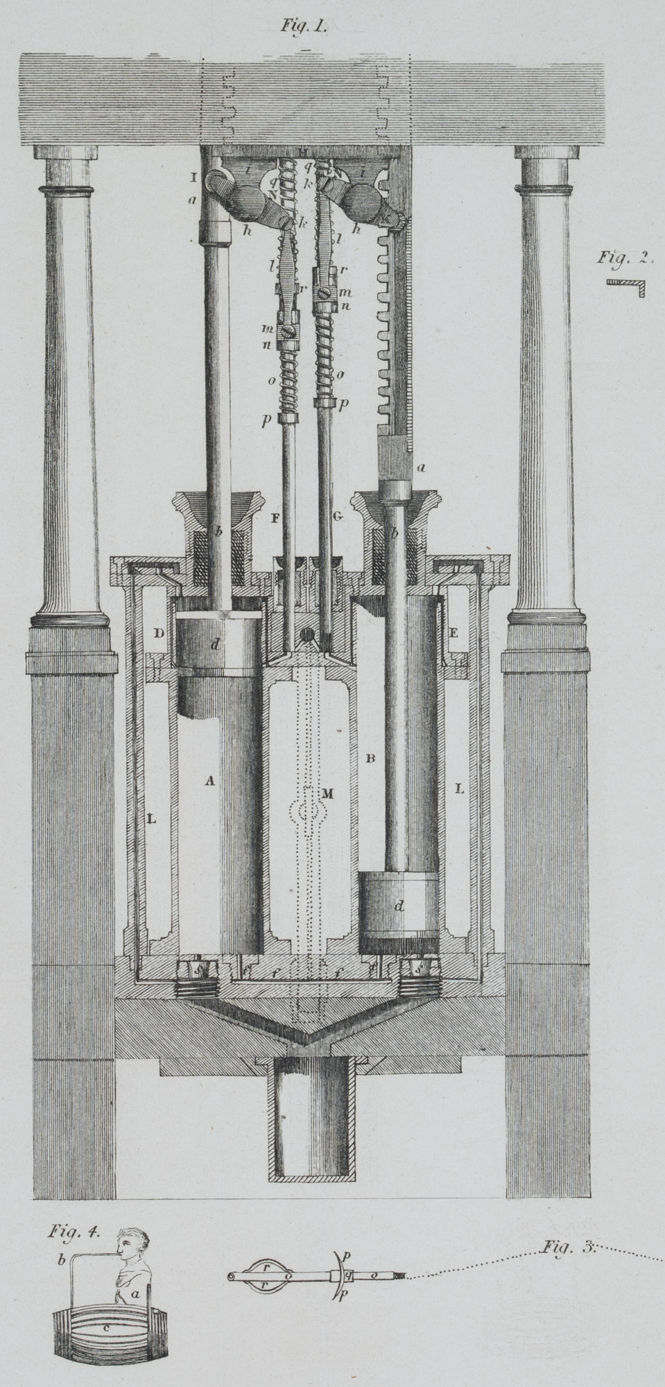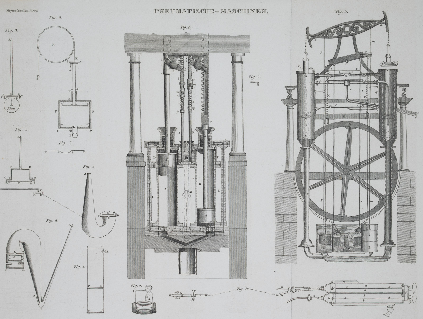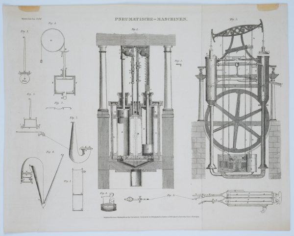 Unbekannt (19. Jahrhundert), Detaildarstellungen von pneumatischen Maschinen, 19. Jahrhundert, Stahlstich
