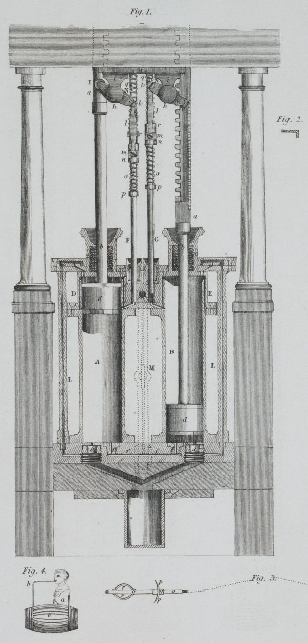 Unknown (19th century), Detailed illustrations of pneumatic machines, 19th century, Steel engraving