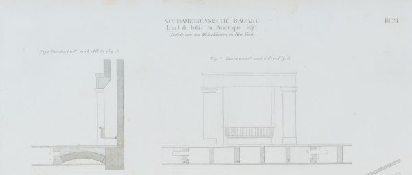- Beschreibung: Aus: Allgem. Bauzeitung, 1846 (links unten bezeichnet); oben rechts oben nummeriert “Bl. 24”. Die «Allgemeine Bauzeitung» erschien von 1836 – 1918 (jährlich 6 Doppelhefte) und informierte vor allem über alle wichtigen Bauunternehmungen der Monarchie.