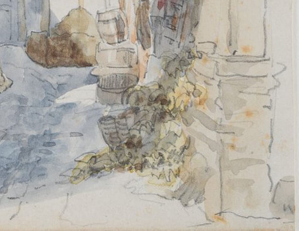 - Technik: Aquarell über Bleistift auf Papier