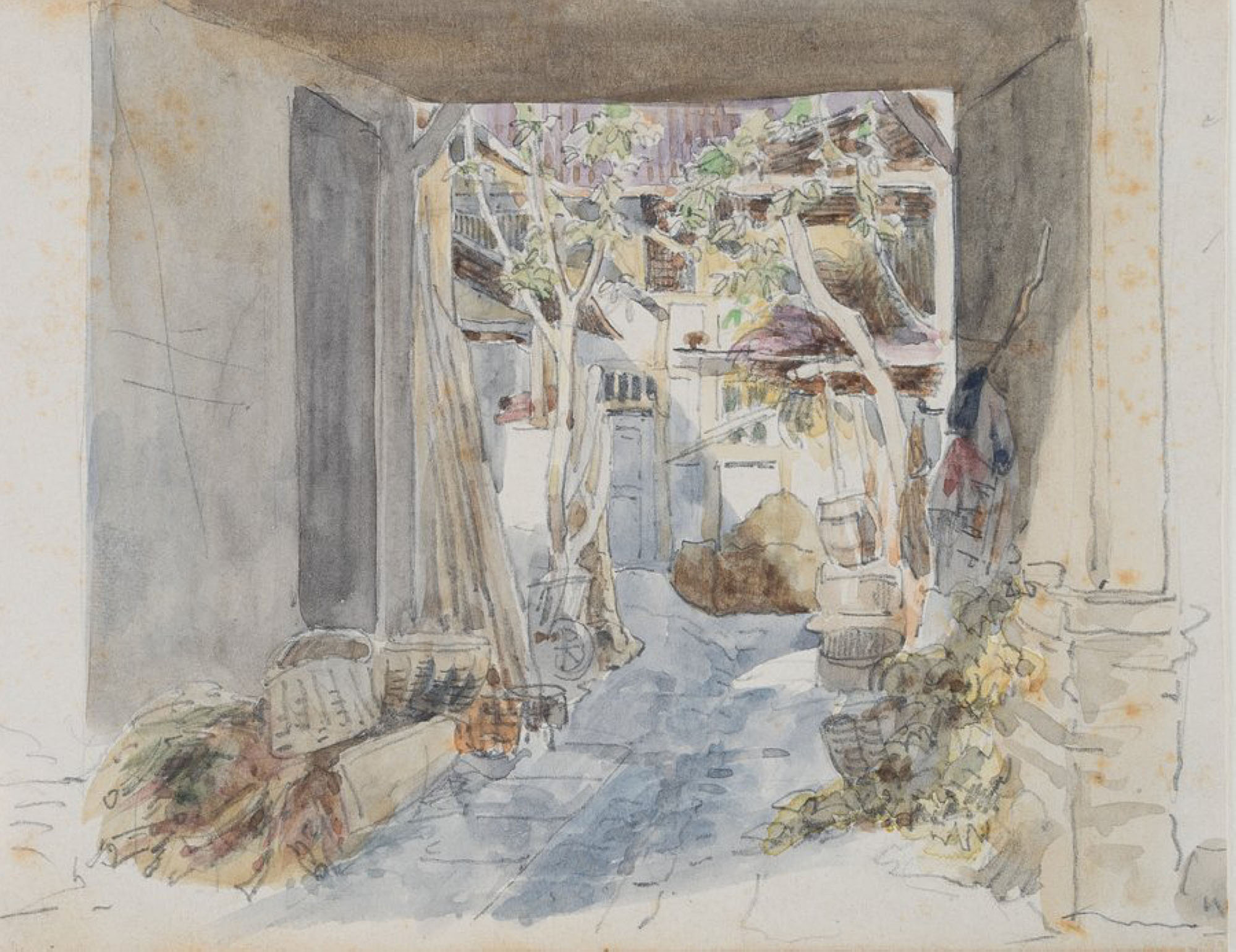 Unknown (19th century), German, Romanticism View from a barn, 19th century, Watercolor