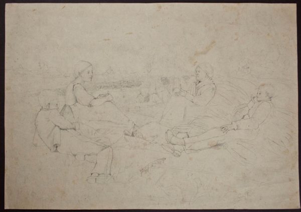 Unbekannt (19. Jahrhundert), Deutscher Romantiker, Brotzeit auf dem Felde, 19. Jahrhundert, Bleistift