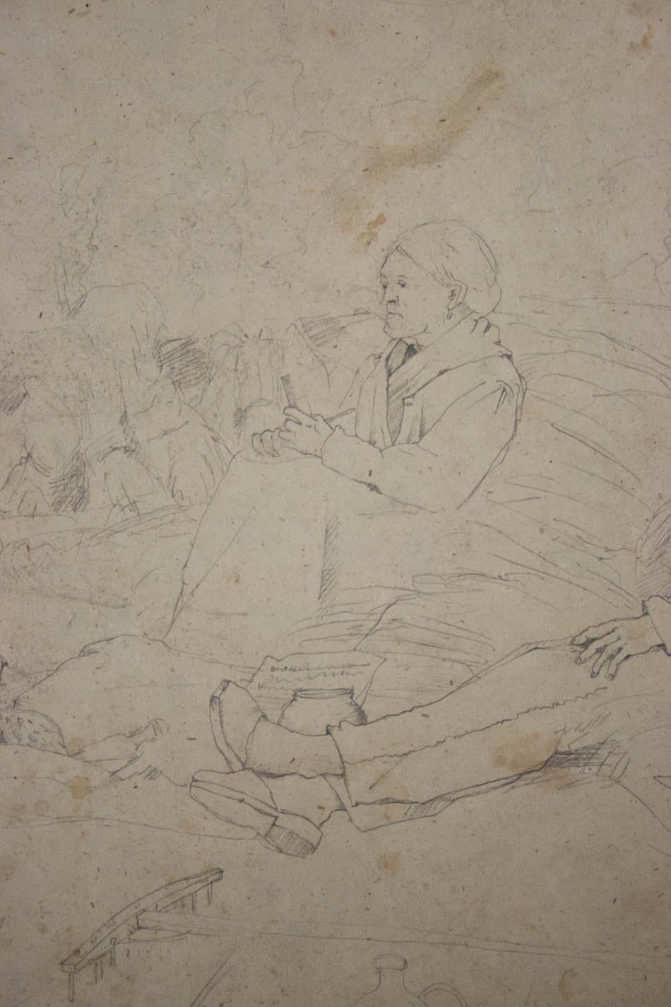 Unknown (19th century), German Romantic, Snack in the Field, 19th century, Pencil