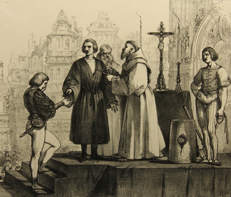 - Description: Group of figures with priest and executioner.