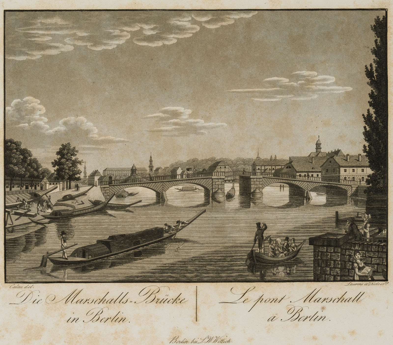 Unbekannt (19. Jahrhundert), Die Marschalls-Brücke in Berlin, um 1850, Stahlstich