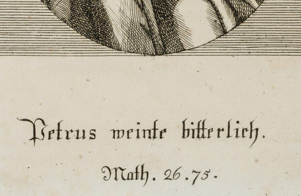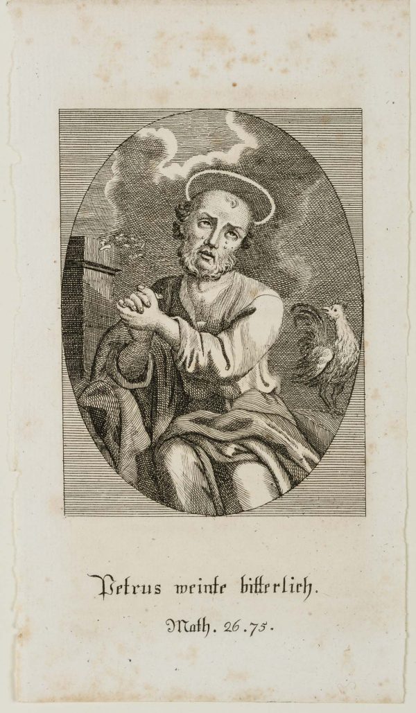 - Beschreibung: benannt “Petrus weinte bitterlich”, gedruckt im Verlag von Ignaz Mair in Heidelberg, 1812.