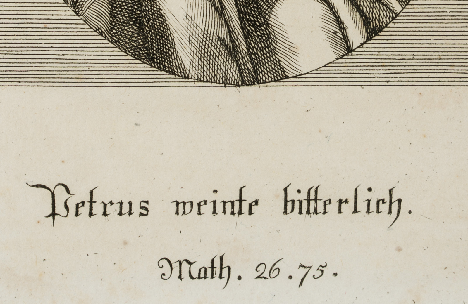 - Description: named “Petrus weinte bitterlich” (Peter wept bitterly), printed by Ignaz Mair in Heidelberg, 1812.