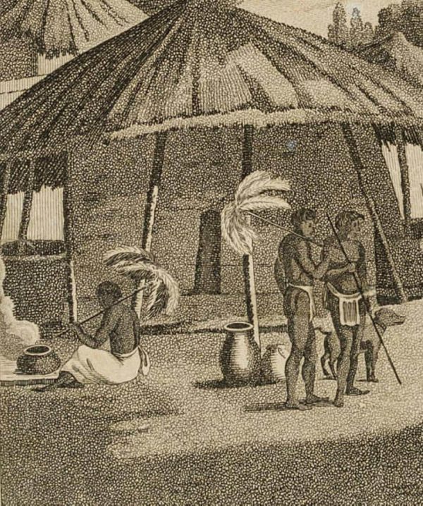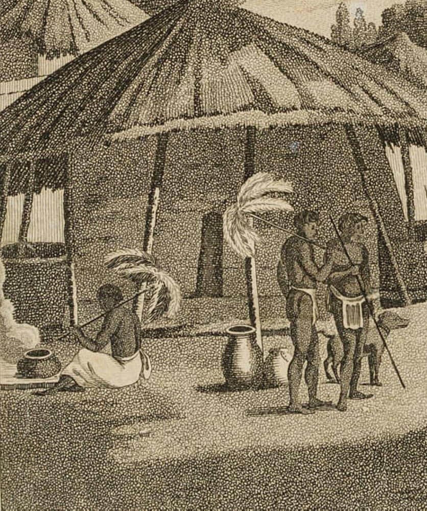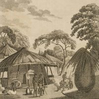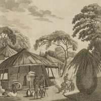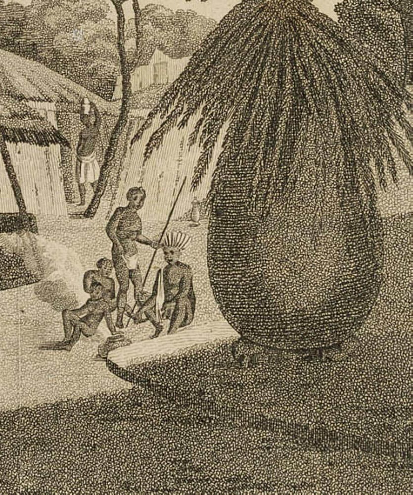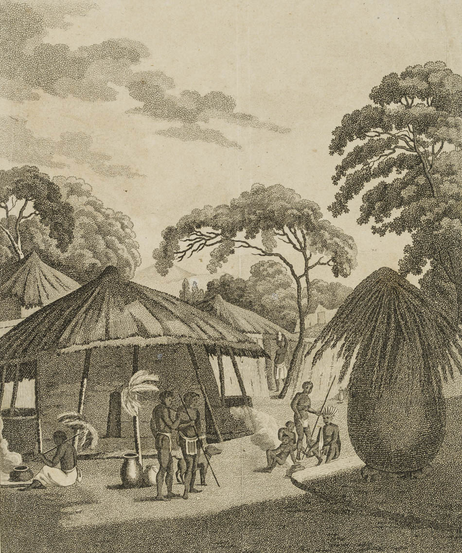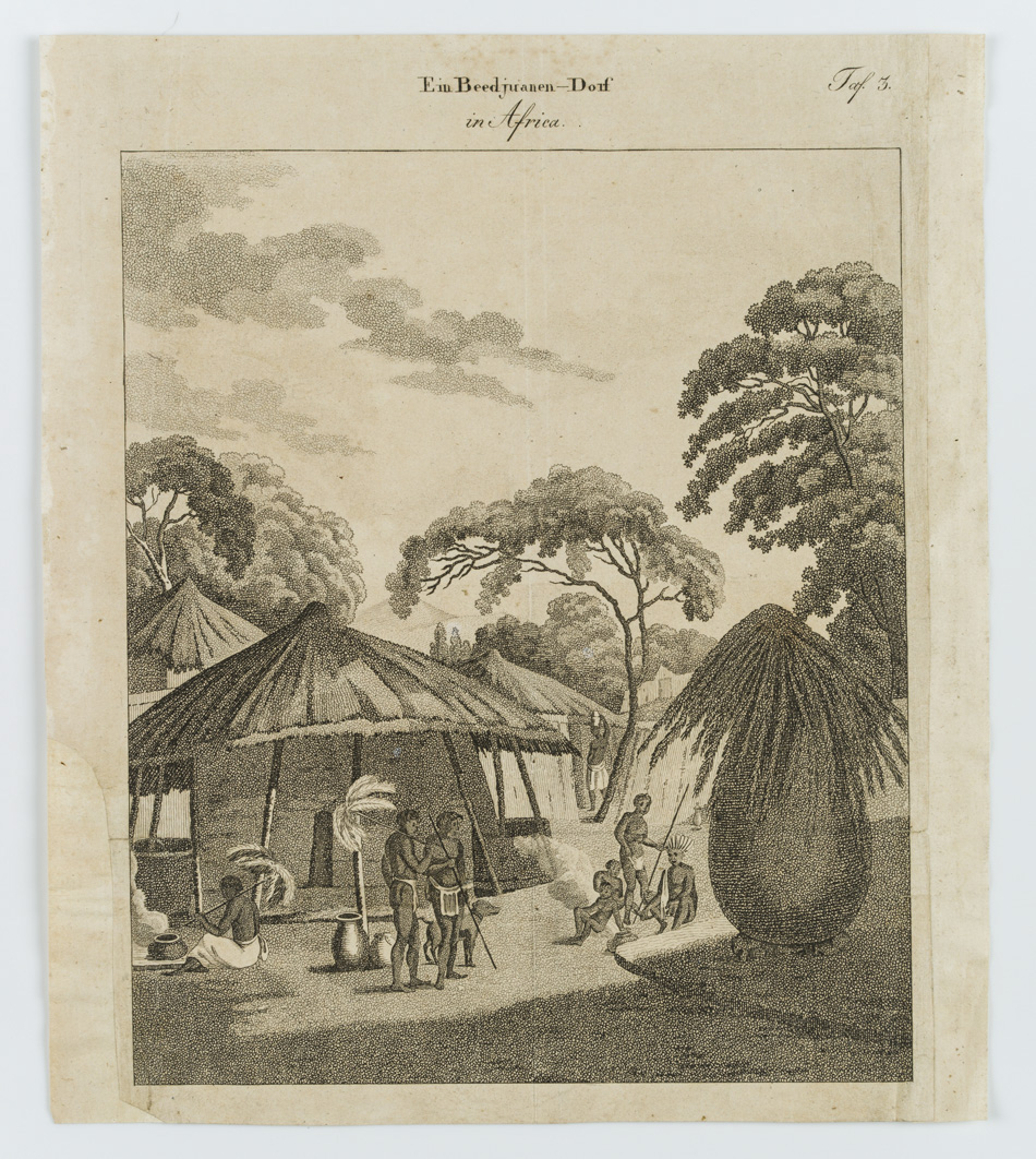 - Inscription: Oben betitelt: “Ein Beedjuanen-Dorf in Africa”.