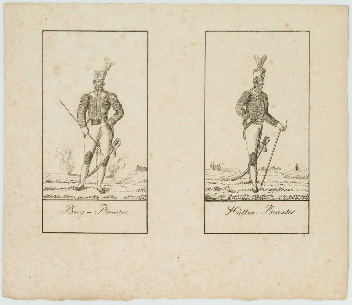 Unbekannt (19. Jahrhundert), Ein Bergbeamter und Hüttenbeamter in ihrer Uniform, um 1800, Federlithographie