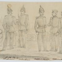 Unknown (19th century), Impressive Portraits of Officers and Uniforms of Different Ranks and Troops, From a Sketchbook, 1851, Pencil