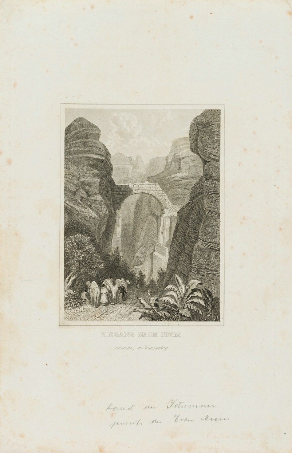• Inscription: Inscribed at the bottom centre “EINGANG NACH EDOM/ Carlsruhe, im Kunstverlag”.