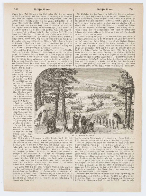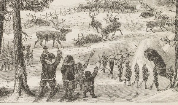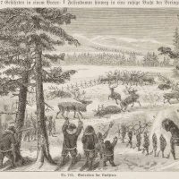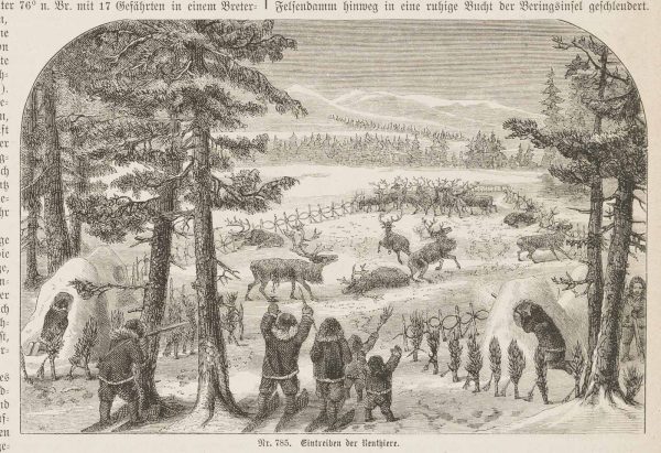 Unbekannt (19. Jahrhundert), “Eintreiben der Renthiere”, Arktische Länder, um 1850, Holzstich