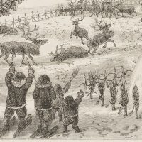 Unknown (19th century), “Collecting the reindeer”, Arctic Lands, c. 1850, Wood engraving