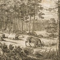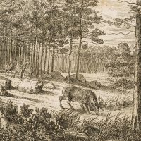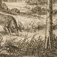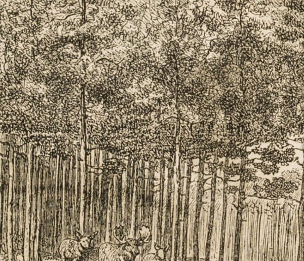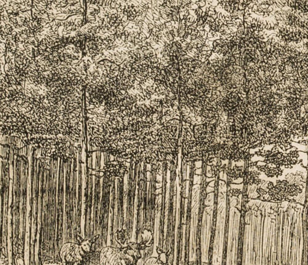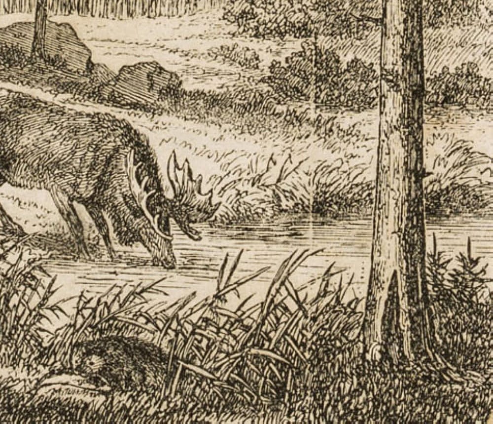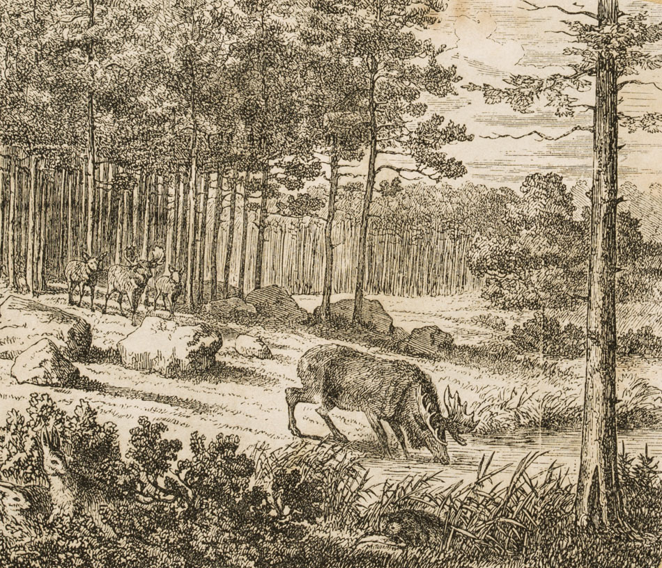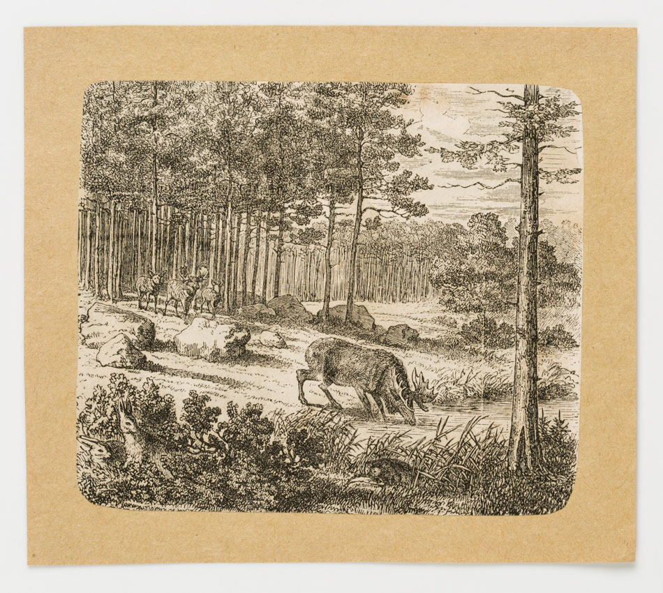 Unknown (19th century), Elks by the river, 19th century, Woodcut