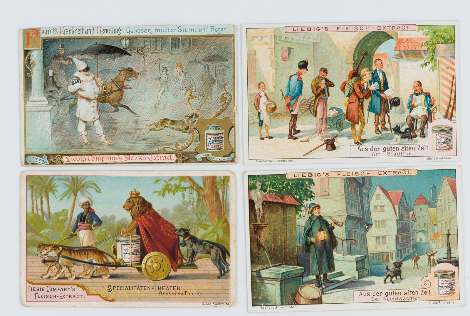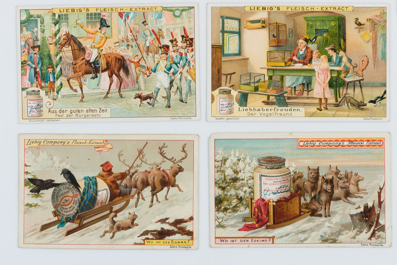 - Description: Collectible pictures of an advertising campaign around 1890 with scenes of the “good old days”, Biedermeier, imperial-era scenes in nature and society.