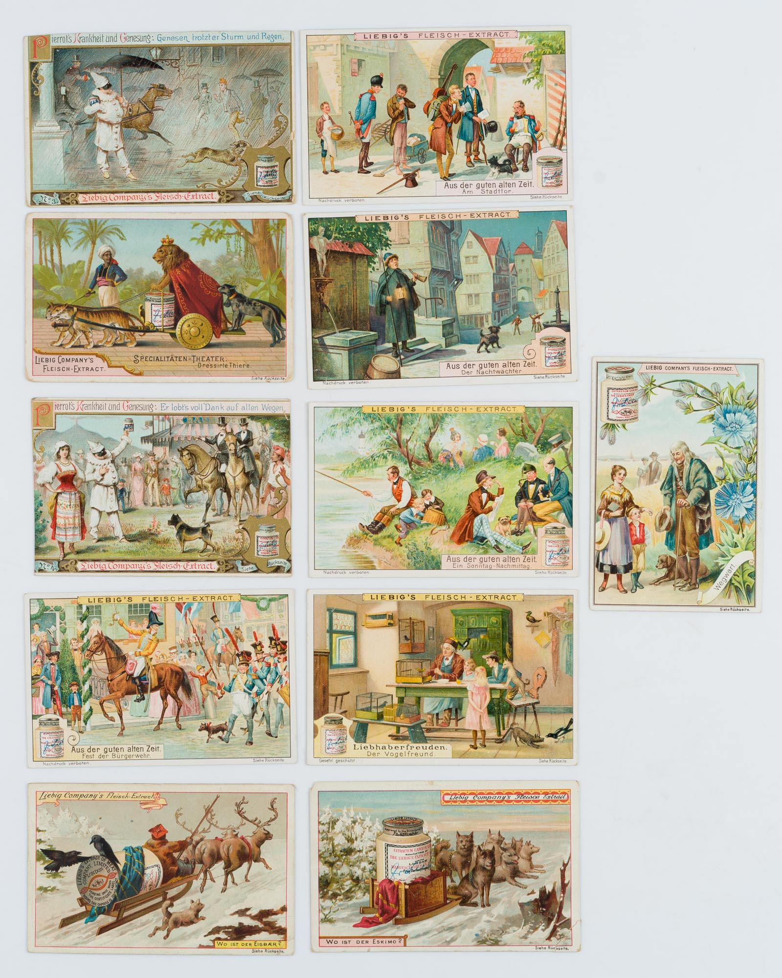 Unbekannt (19. Jahrhundert), Elf Sammelbilder, Liebig, “Aus der guten alten Zeit”, um 1890, um 1890, Chromolithographie