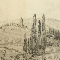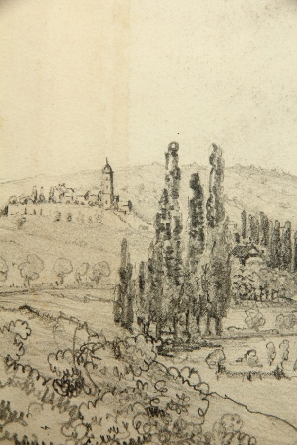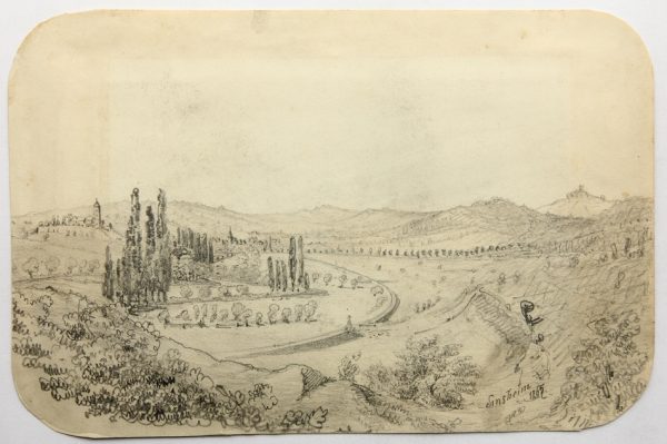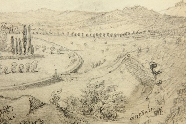 The sheet comes from an anonymous scrapbook, which contains in particular pencil drawings of architecture and landscapes in Germany, especially in the Black Forest and on the Upper Rhine, as well as in Italy, most of which date to the early second half of the 19th century. The unknown artist also shows a certain affinity for railway romanticism and engineering constructions, so that the draughtsman’s professional activity is perhaps to be sought in this environment.