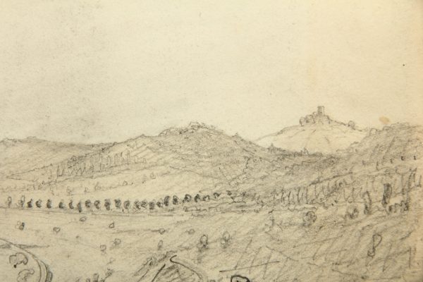 Unknown (19th century), Elsenz Valley to Sinsheim and Steinsberg Castle, 1865, Pencil