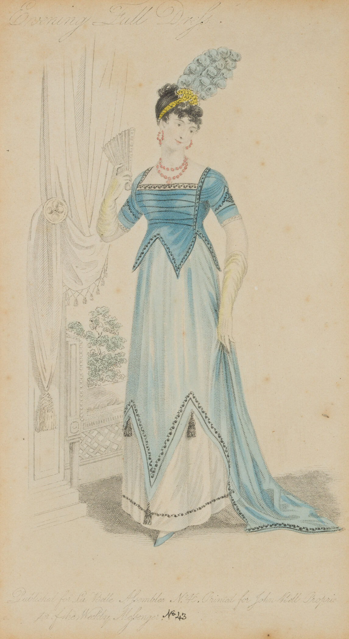 - Bezeichnung: Oben mittig im Druck bezeichnet: “Evening full dress”. Unten mittig im Druck nummeriert: “N46 | N43”.