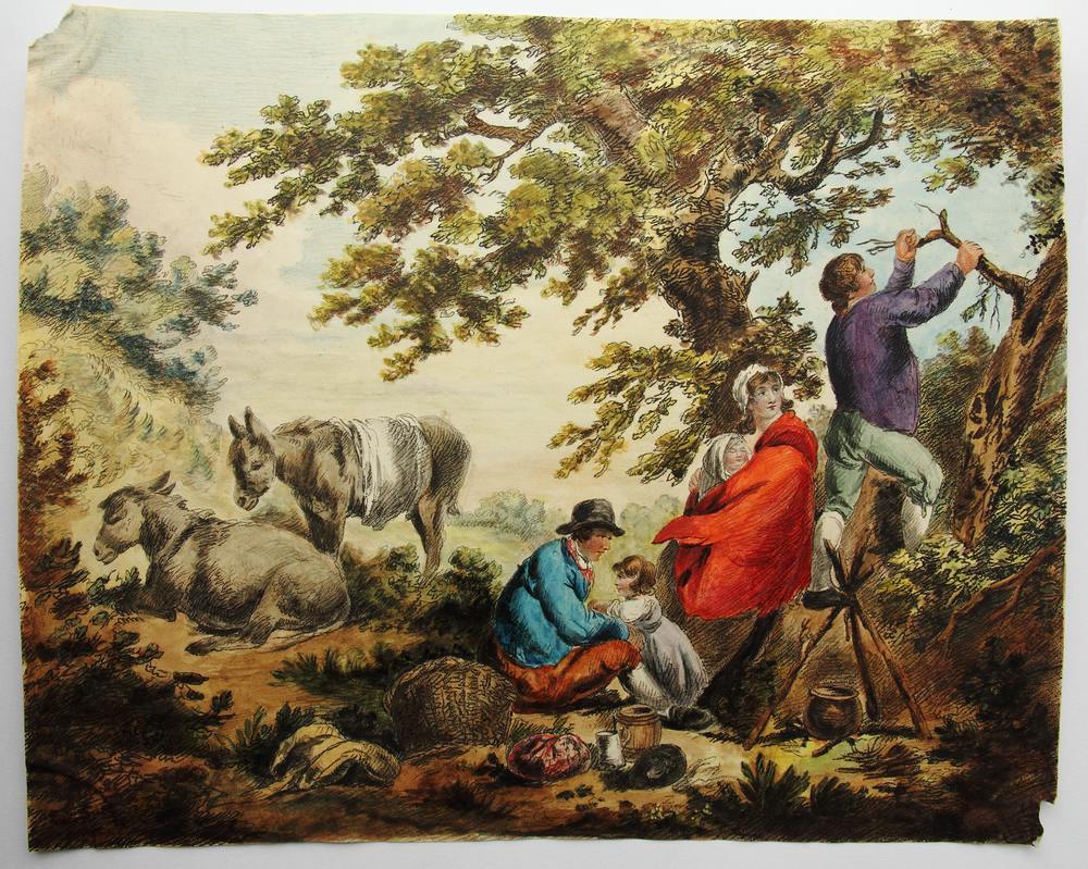 Unknown (19th century), English, Traveling family in the field camp, c. 1800, Lithography