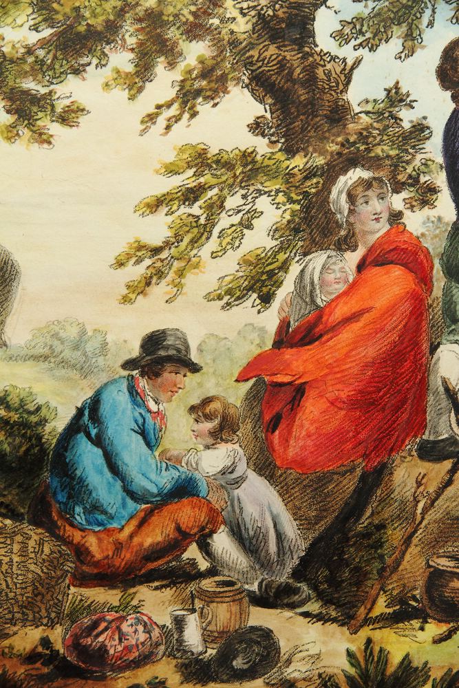 Unbekannt (19. Jahrhundert), Englisch, Reisende Familie im Feldlager, um 1800, Lithographie